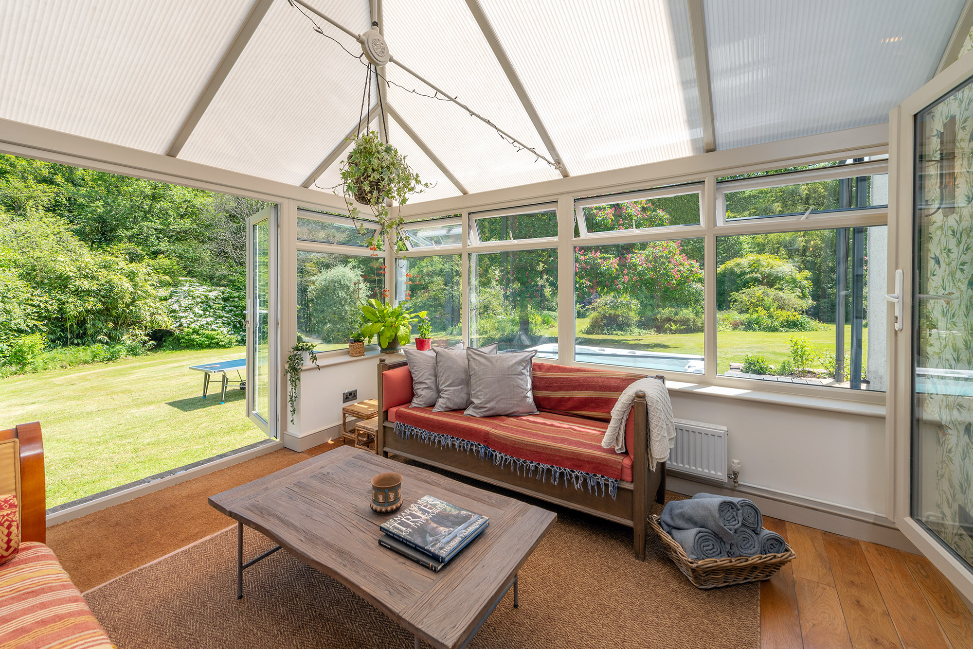 Babblebrook - The conservatory opens onto the terrace and gardens at the side of the house -