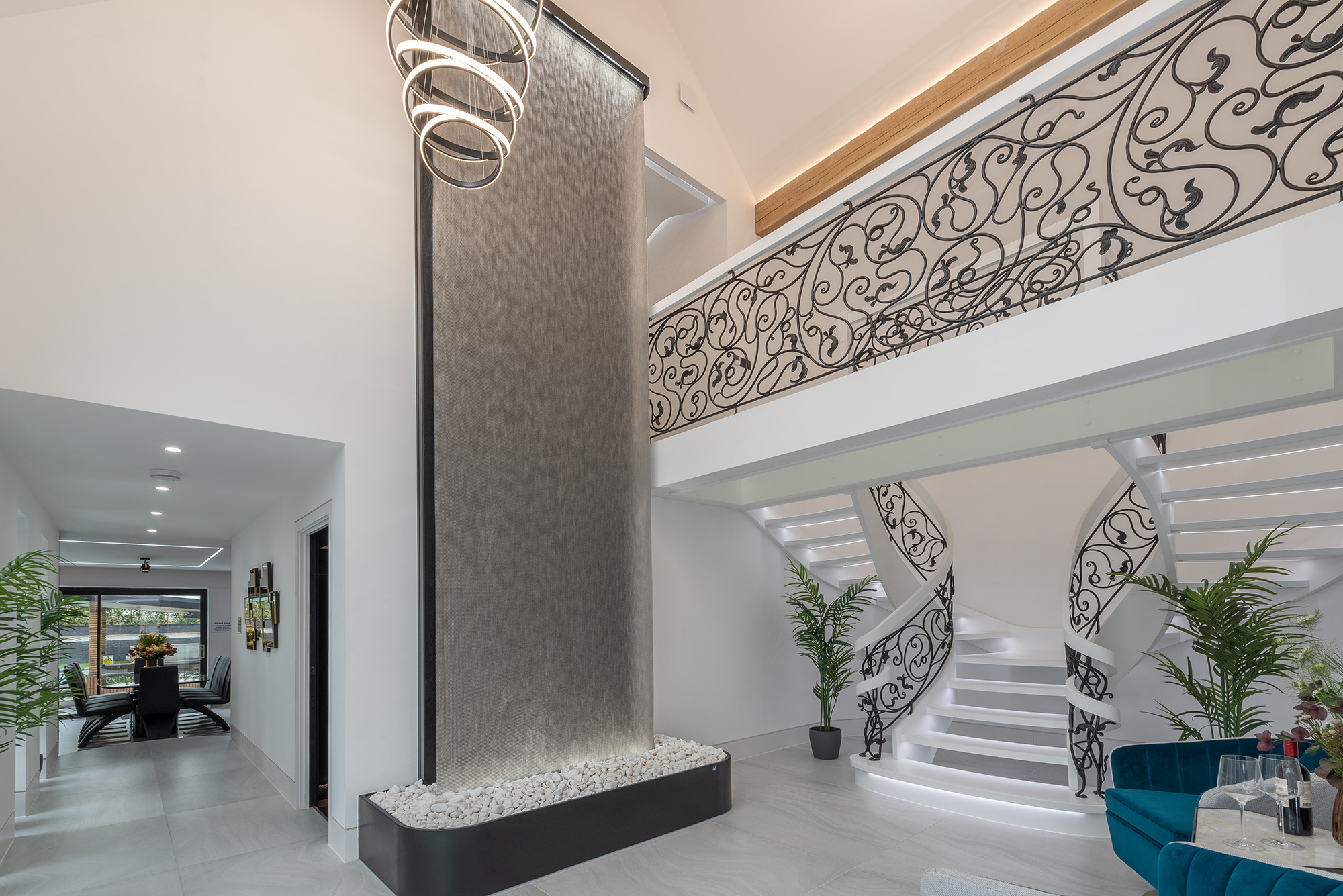 Bluewater: The hallway - a waterfall and a bespoke staircase -