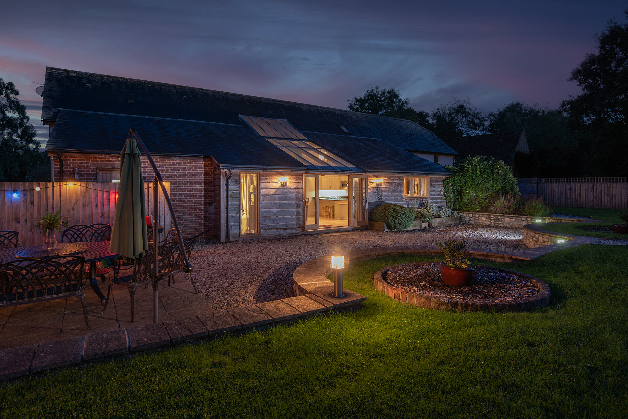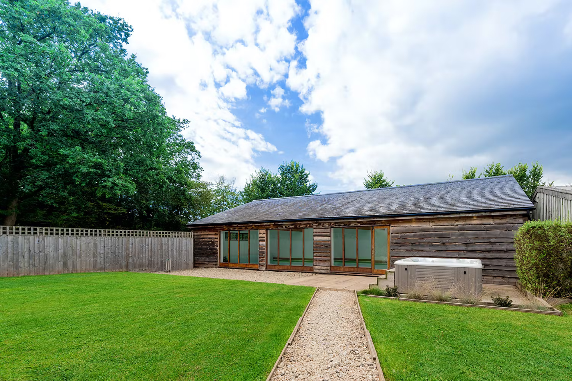Blushings Barn - A peaceful private setting; landscaped grounds with lawns, a play area, a hot tub, and an indoor pool