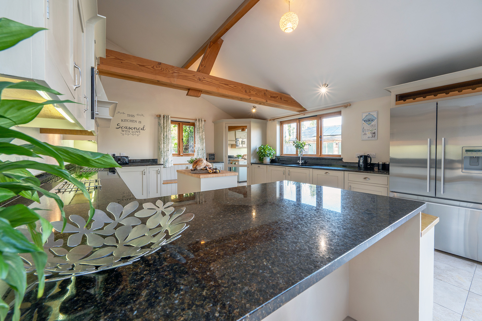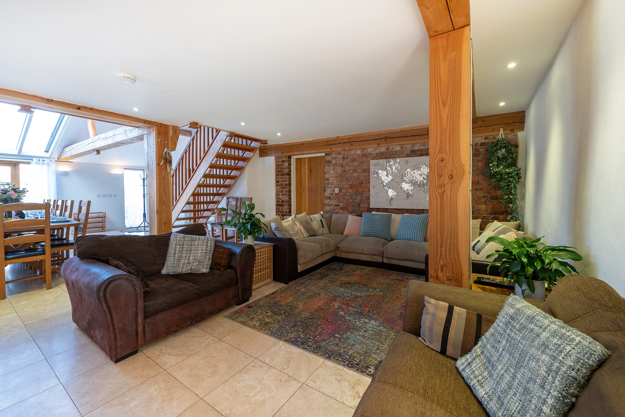 Blushings Barn - Daylight pours in to the open-plan kitchen-dining room through the big glass roof -