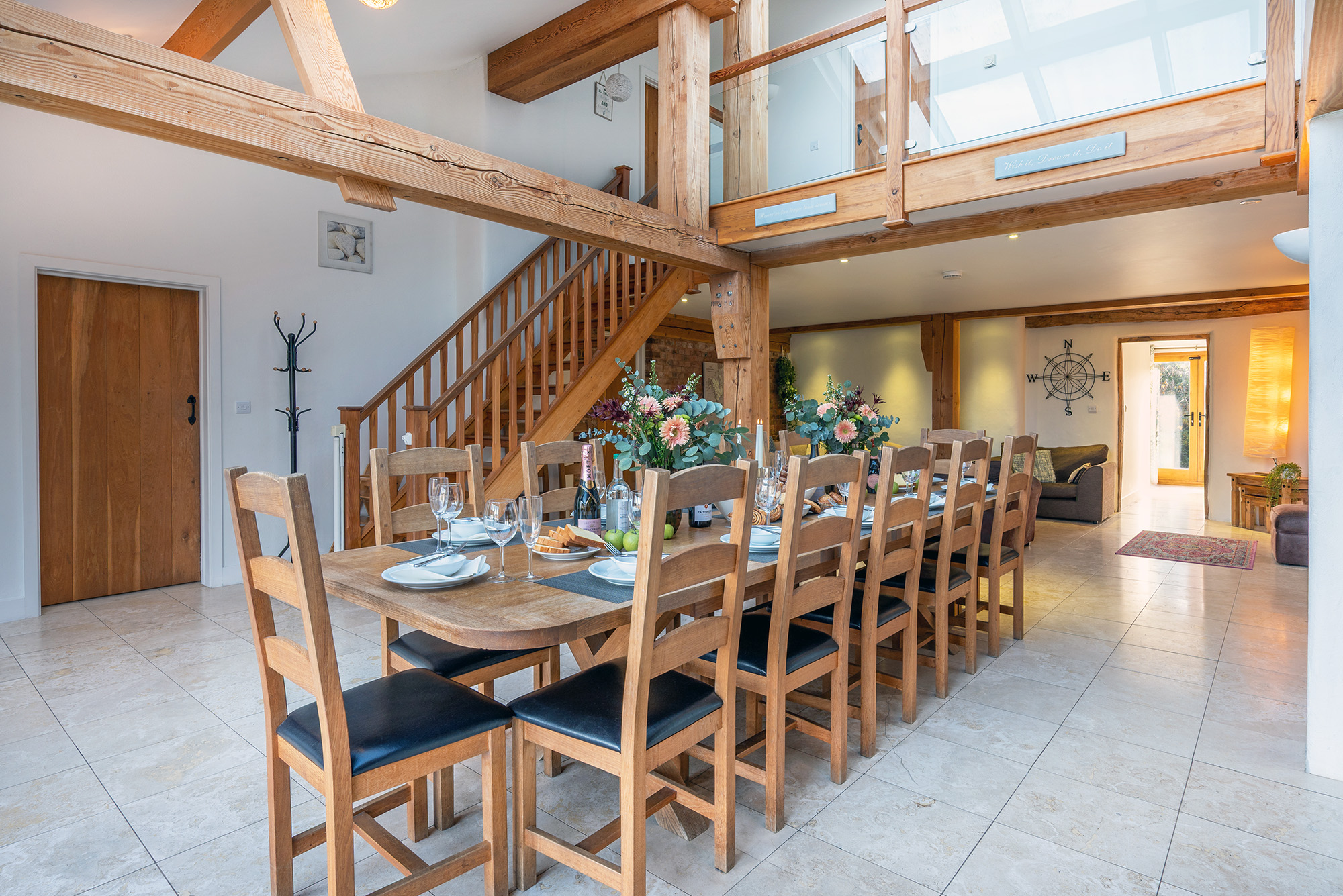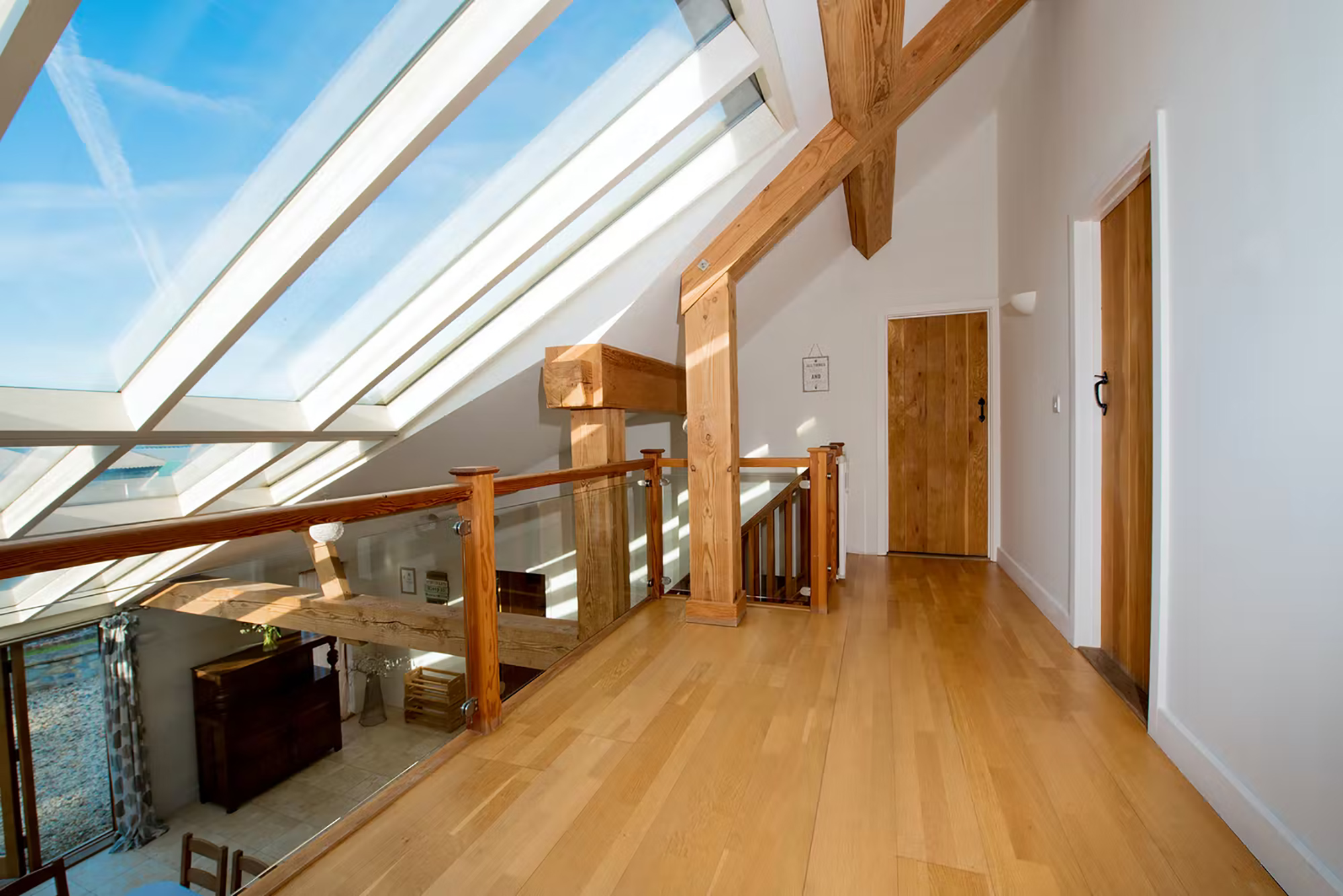 Blushings Barn - The spacious mezzanine landing overlooks the kitchen-dining room -