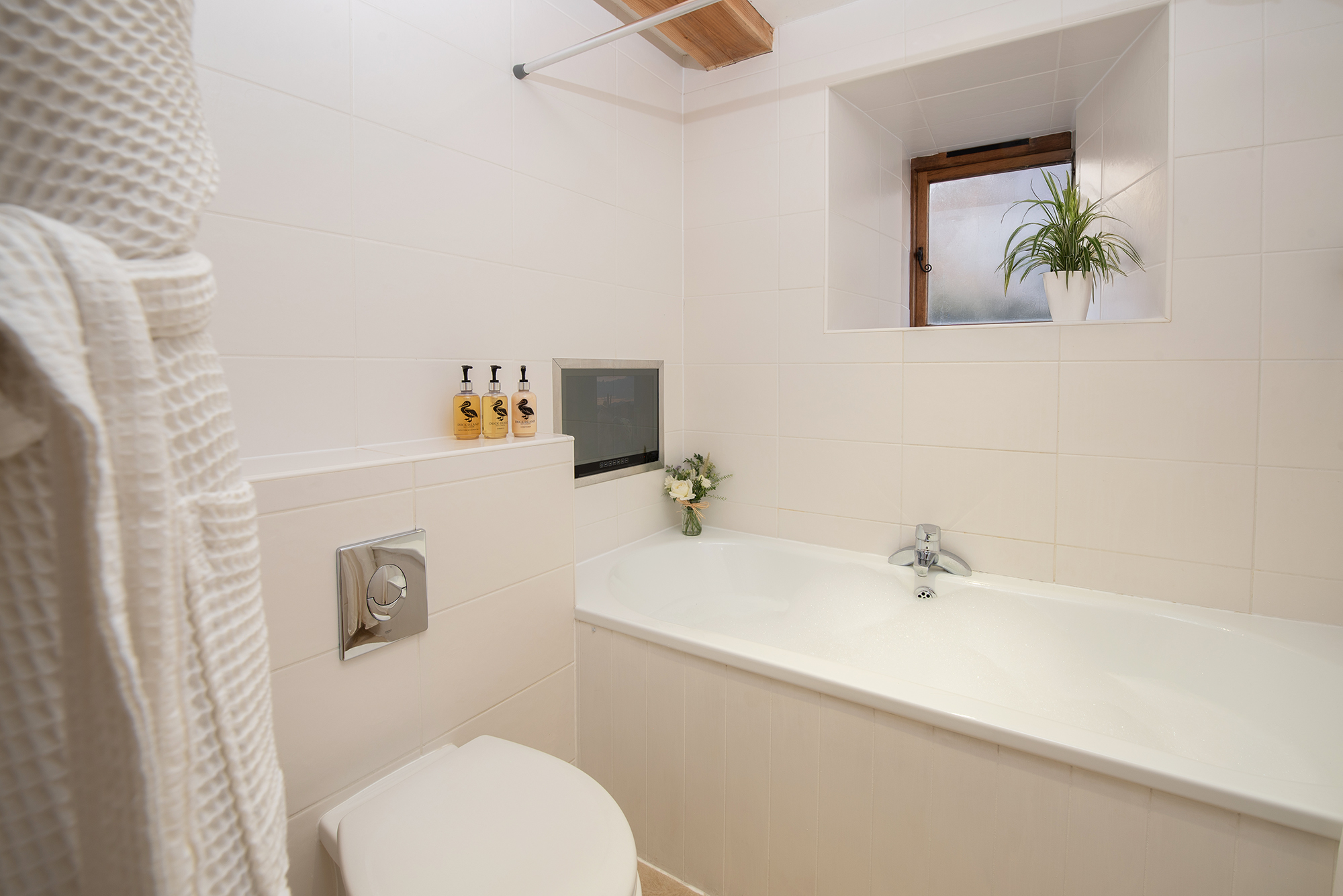 Blushings Barn - The en suite bathroom for Bedroom 4: what a treat - TV in the bath, but mind the water doesn't get cold! -