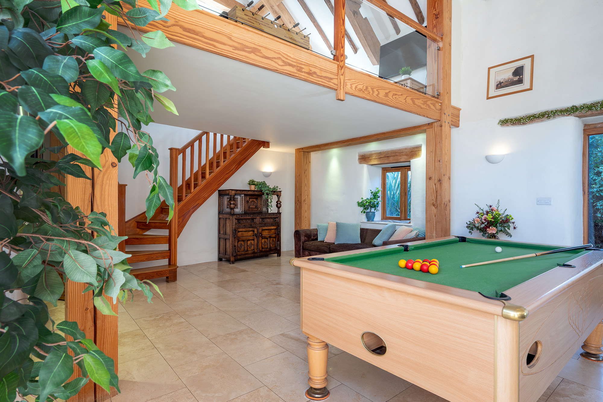Blushings Barn - The games room has a pool table and table football; above it is a quiet mezzanine -