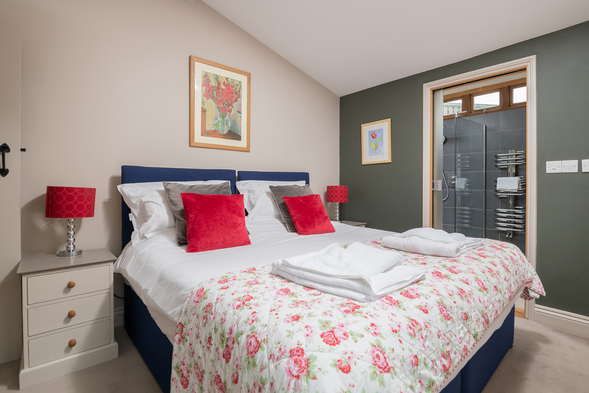 This on the ground floor and has a super king bed and ensuite shower room with a walk-in shower and 2 basins.