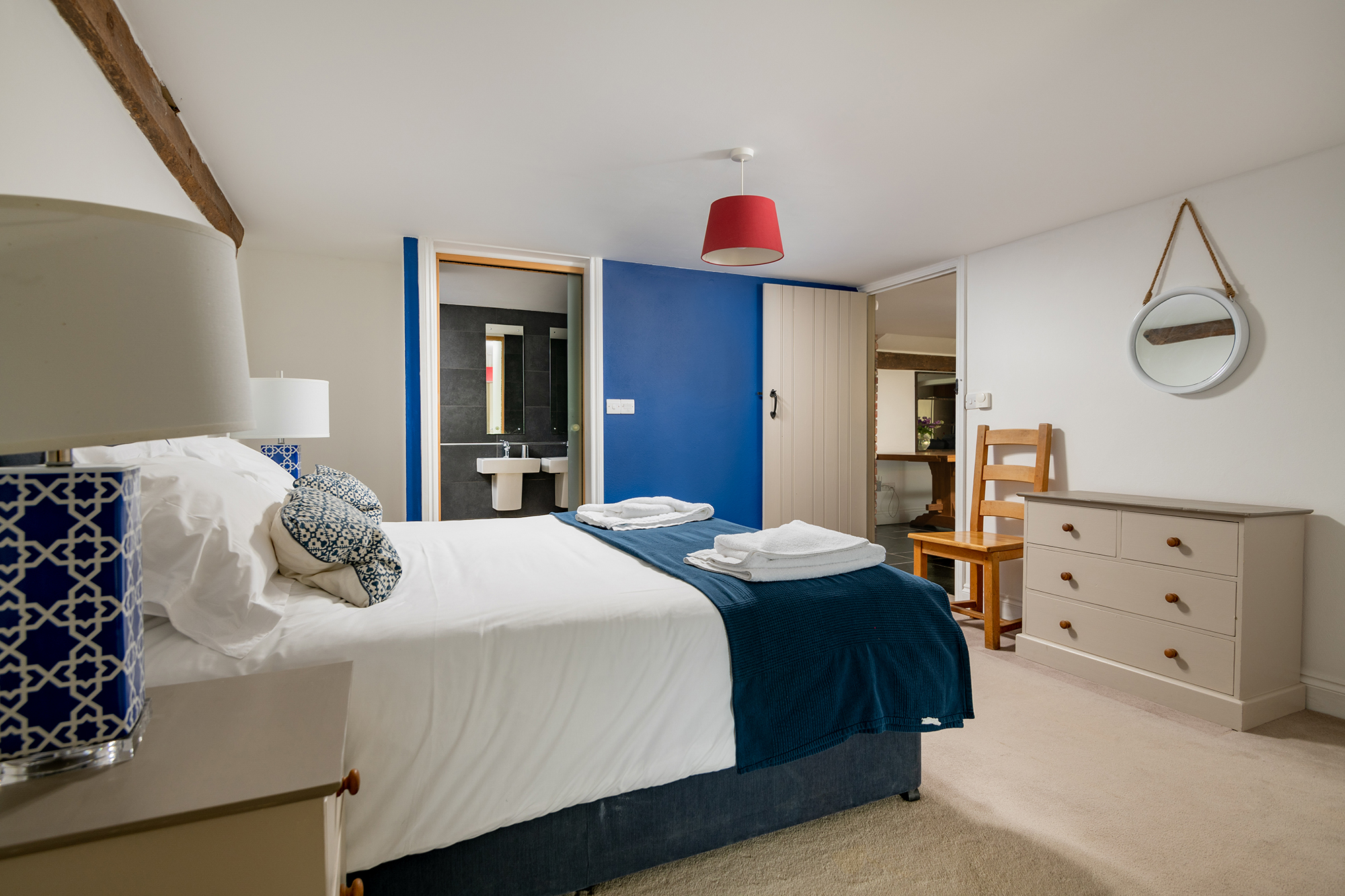 This is on the ground floor and has a super king bed and an ensuite bathroom with a bath and overhead shower. The bathroom can also be accessed from the hall.