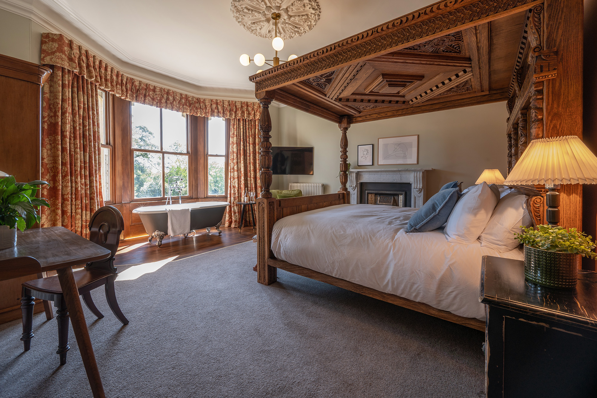 Cowslip Manor - The Main House, Bedroom 1: A hand carved four posted bed and a free standing bath -