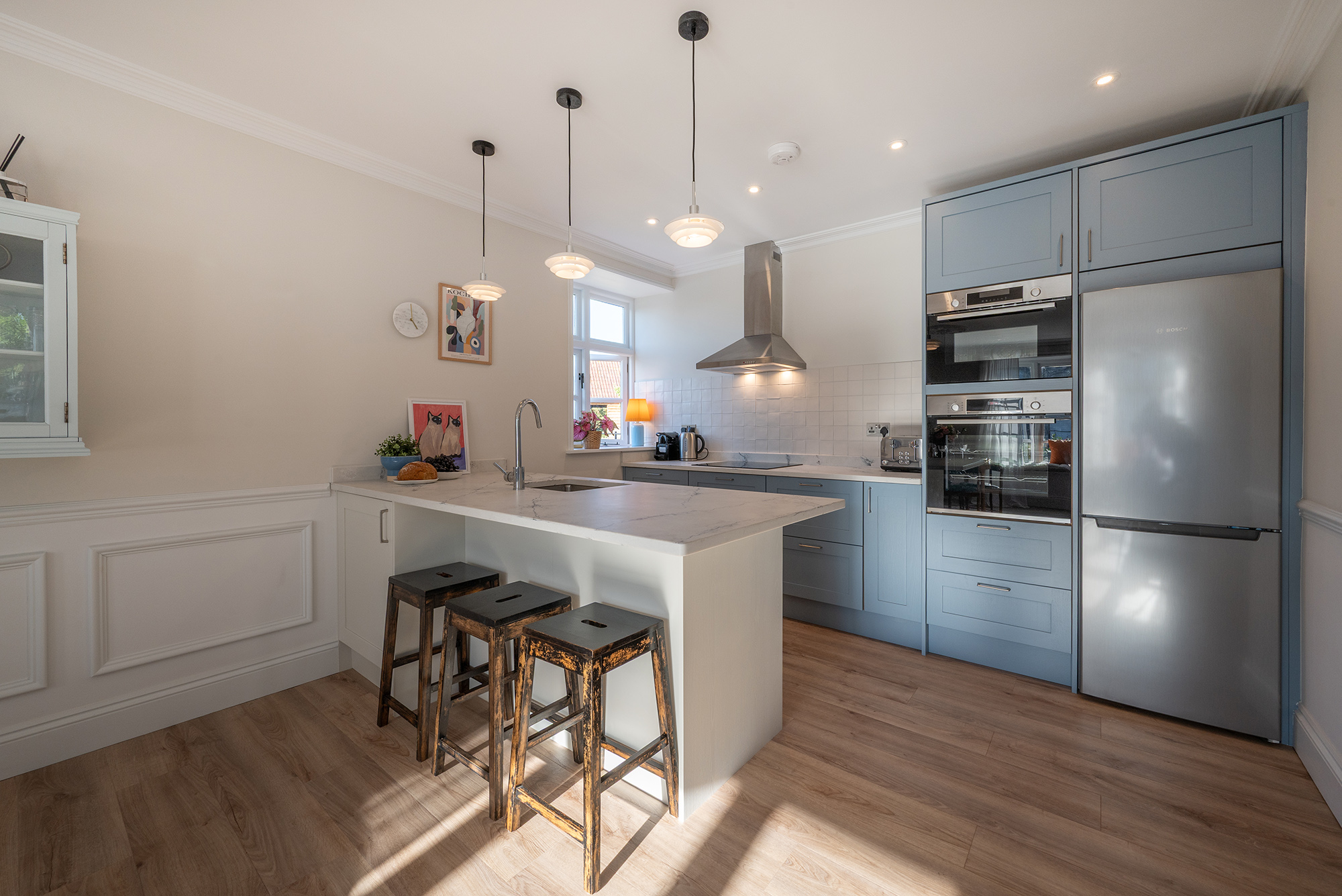Cowslip Manor - Cowberry Cottage: A crisp and fresh modern kitchen -