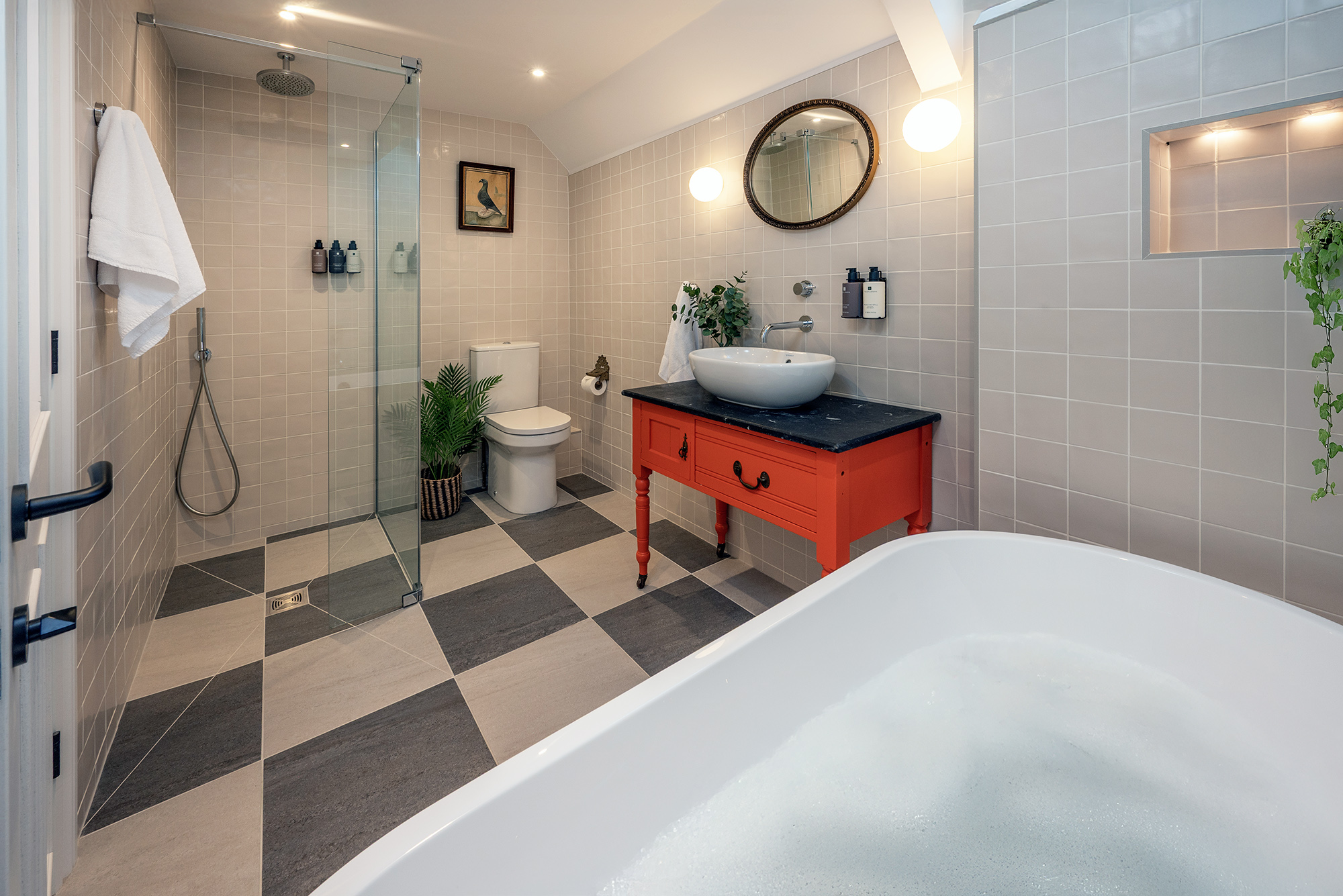 Cowslip Manor - The Main House: The family bathroom has a free standing bath and a separate shower -