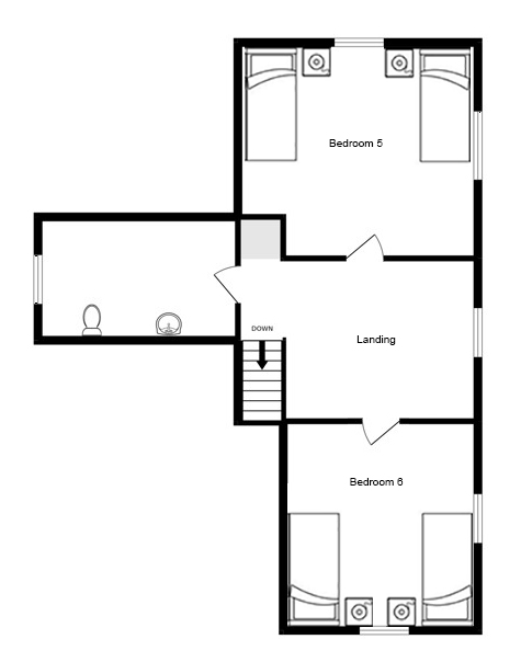 This room is on the second floor and has twin beds. Next to it there is a WC, shared with Bedroom 5.