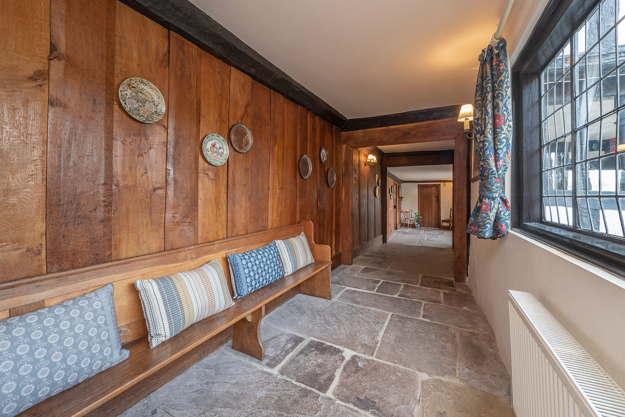 Dovesway: The long hallway runs along the front of the house -