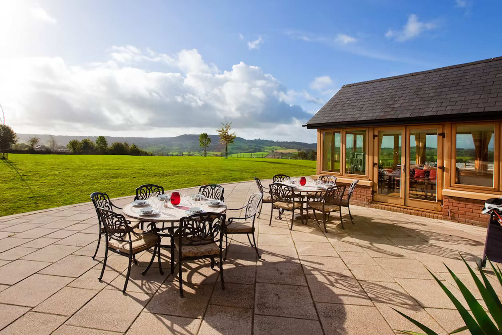 Dreamdays - Relax on the patio; the backdrop is far reaching views of the beautiful Devon landscape -
