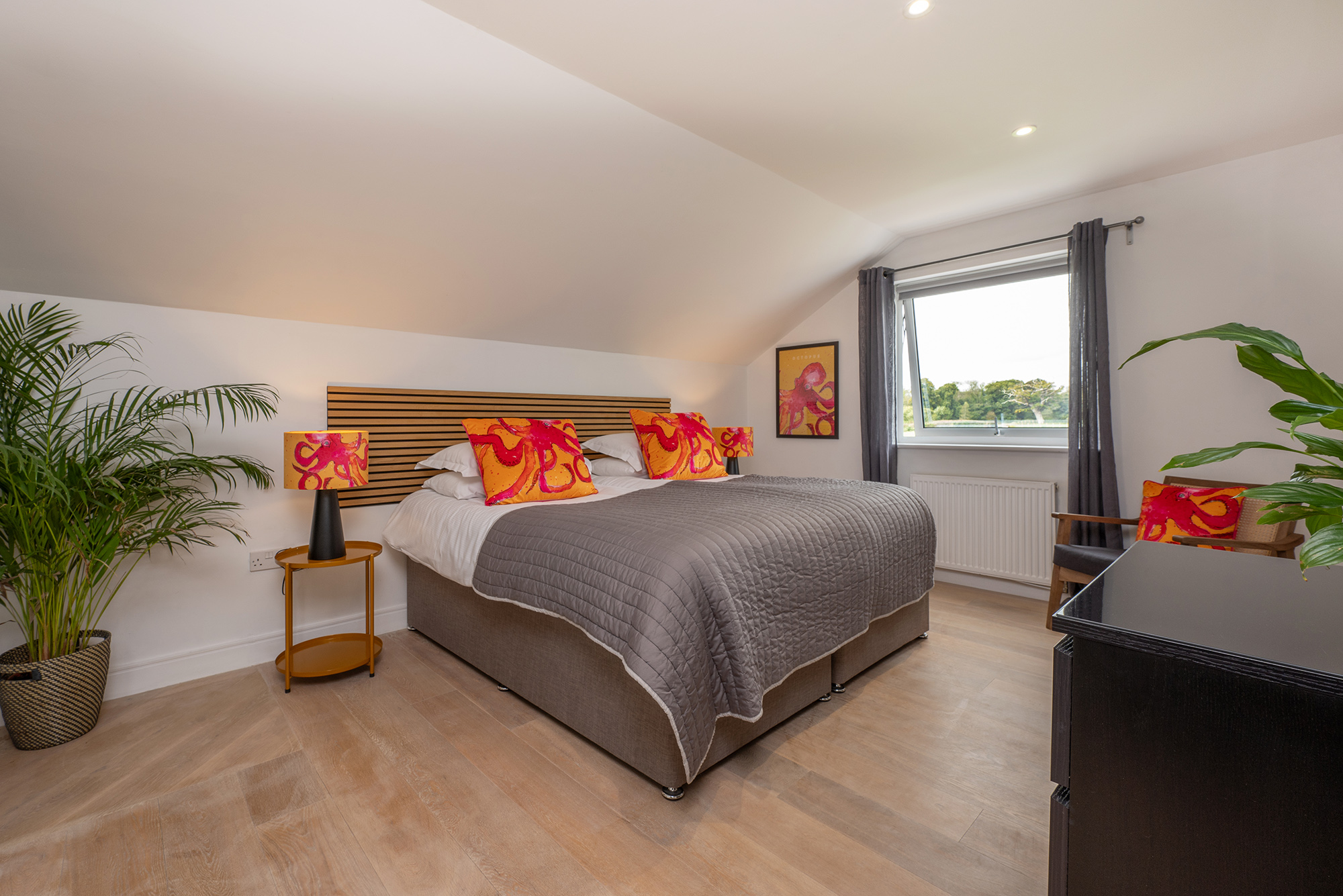 Fuzzy Orchard - Bedroom 1: Access friendly on the ground floor, zip and link beds (super king or twin) and an ensuite wet room Bedroom 1