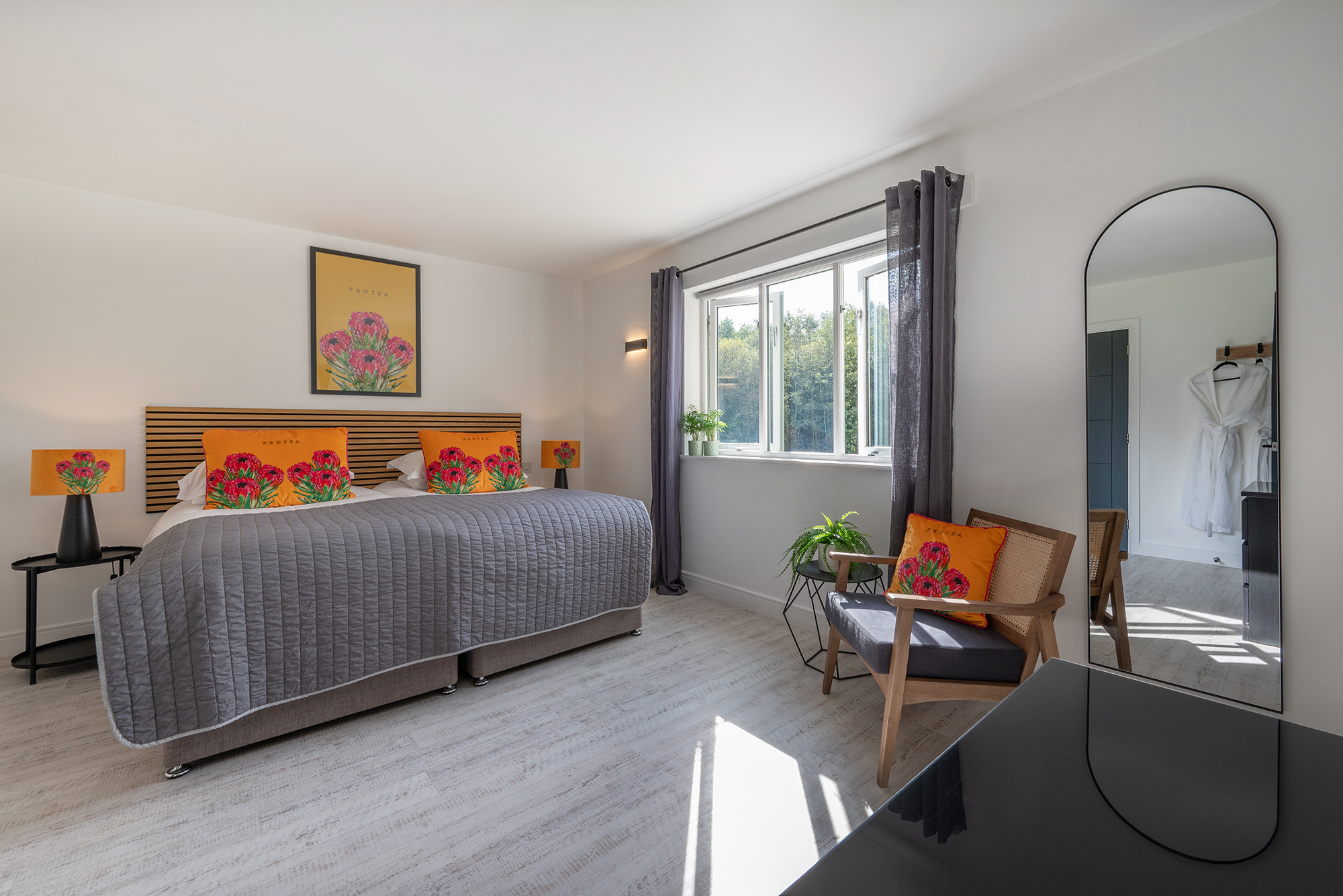 An access friendly room on the ground floor with zip and link beds (super king or twin) and an ensuite wet room (please let us know if you require an assisted shower chair).