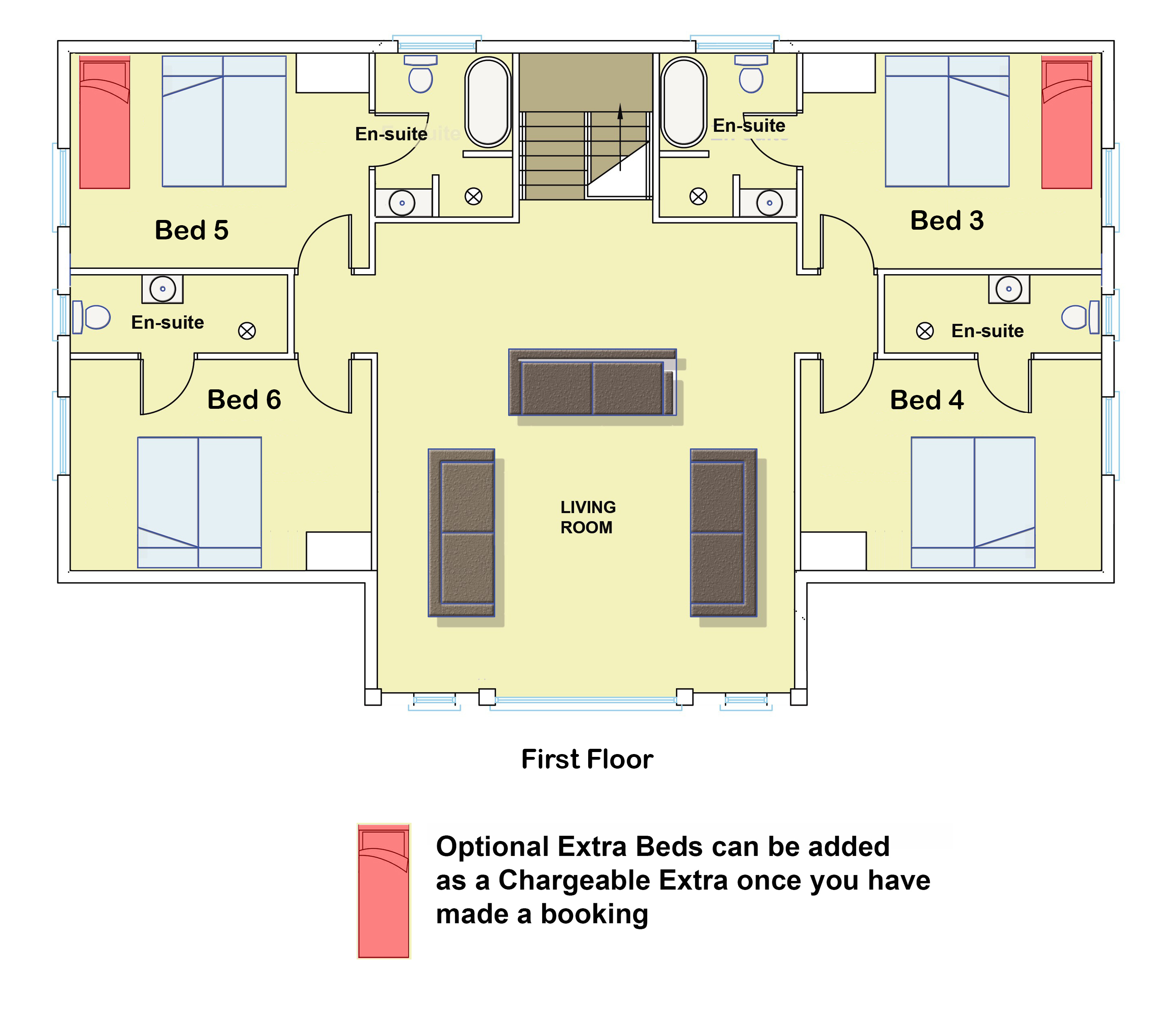 Optional: 1 extra guest bed (extra charge - see Extras).