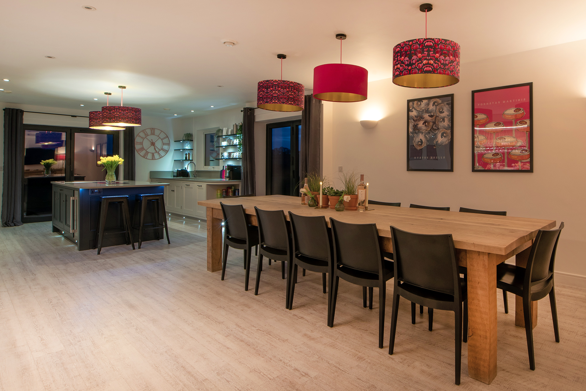 Ham Bottom - The open plan kitchen/dining room has a table to seat 14, and a bar -