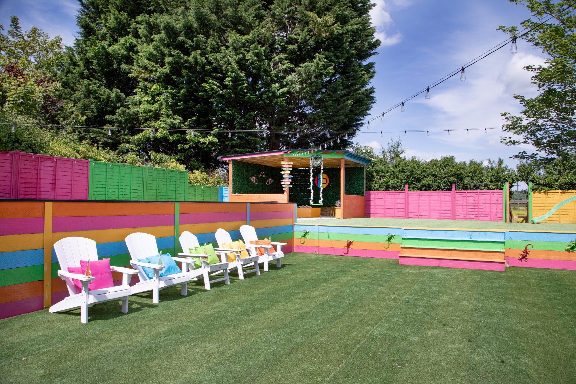 Heavenly Palooza: Chillax outdoors - there's a pool, hot tub, a shack and a play area -