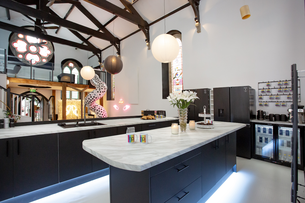 Heavenly Palooza: The mezzanine overlooks the open plan dining and main kitchen area -