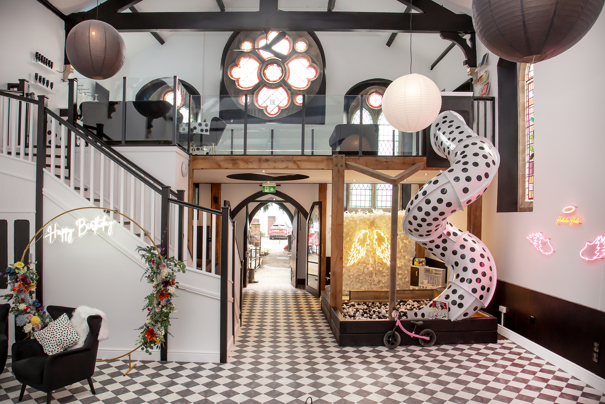 Heavenly Palooza: From the mezzanine level piano wine bar to the ball pit - via a dotty tube slide! -