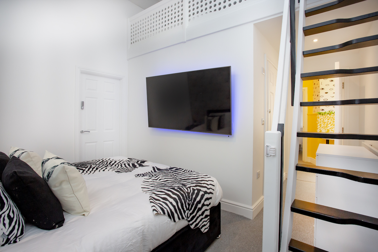 Heavenly Palooza: Zebra Bedroom has 2 super king beds - one on the ground floor and one at loft level -