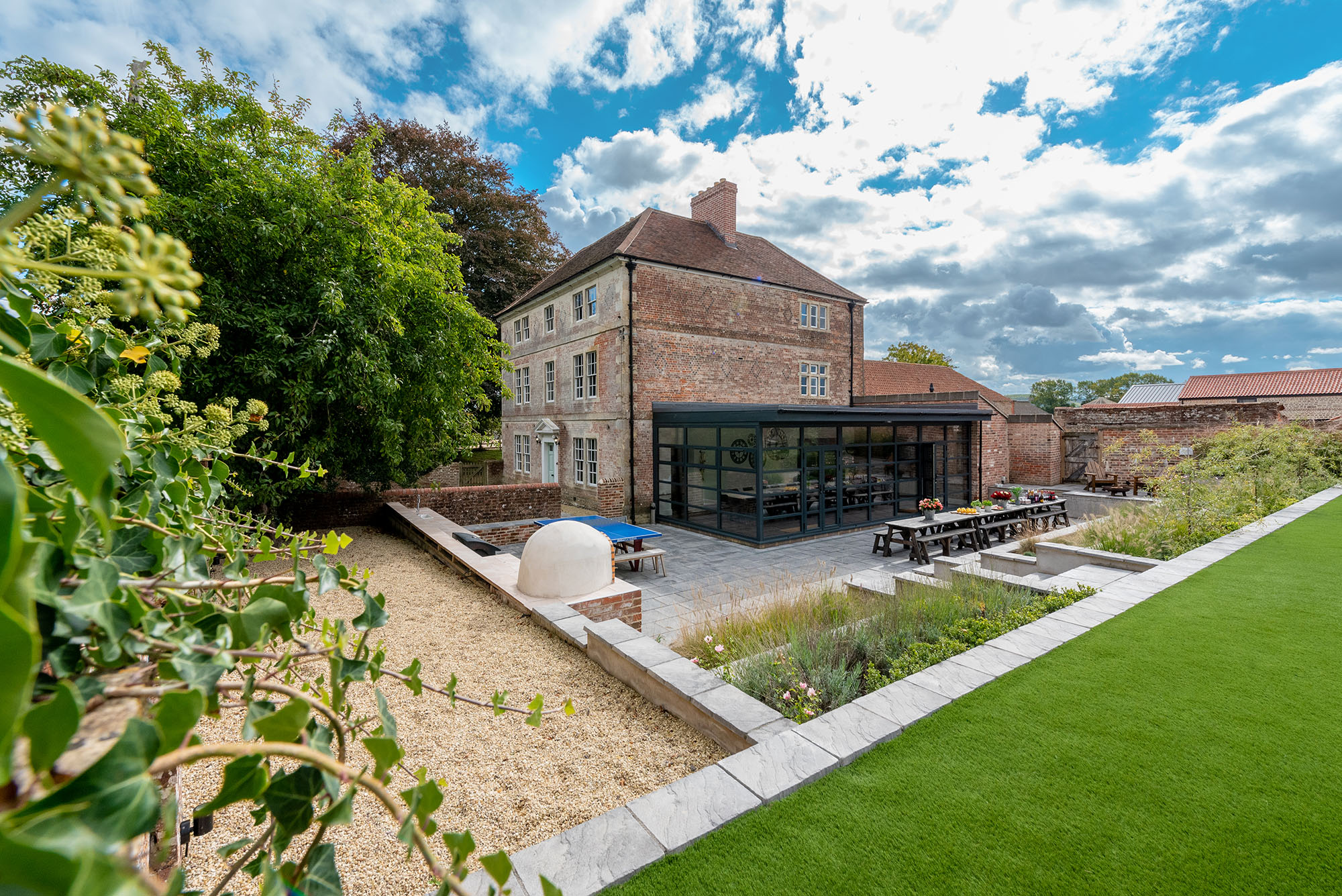 Hunky-Dory - The glass walled dining room overlooks the walled garden -
