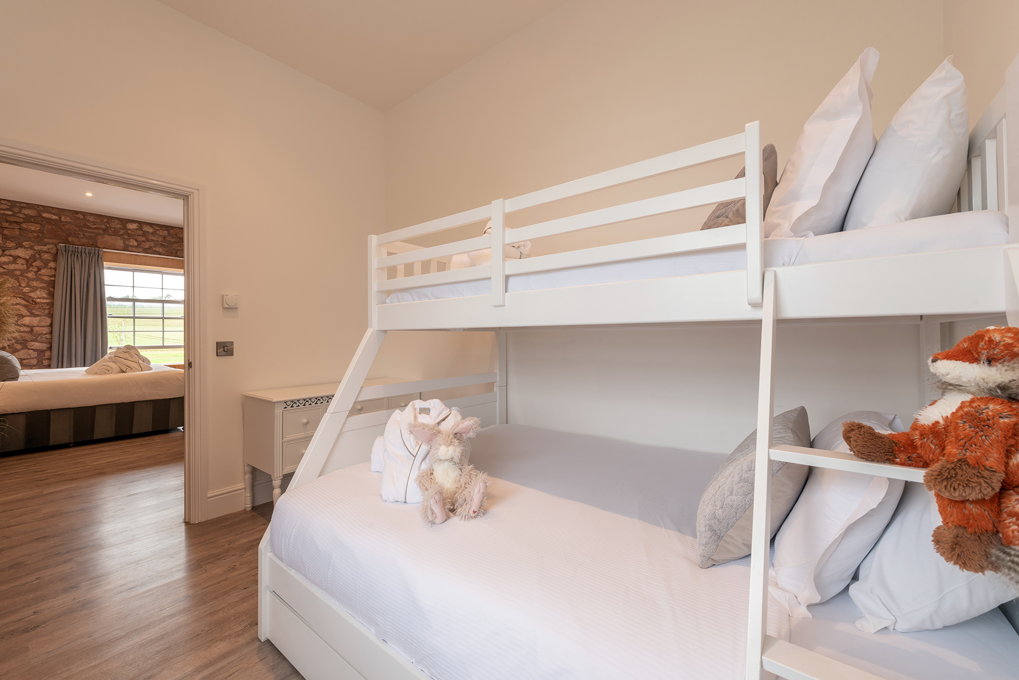Inwood Farmhouse - Bedroom 1 (Stone Close): The adjoining bedroom has bunk beds - double on the bottom, single on top -