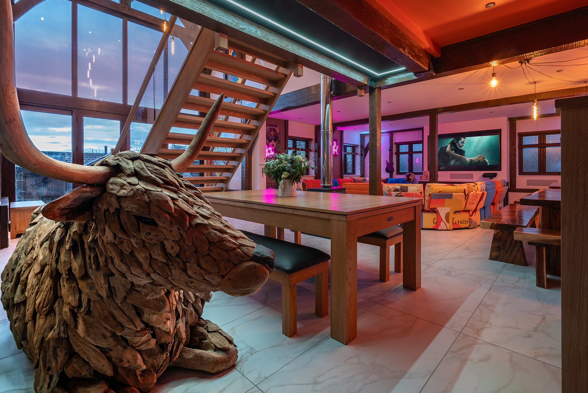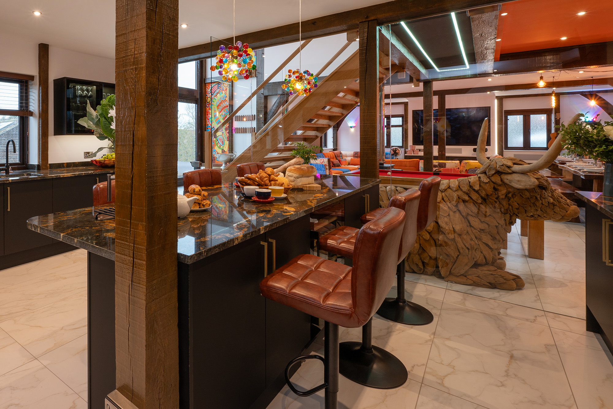 Jollyoaks - On the ground floor there's a large open plan living space with a games area -