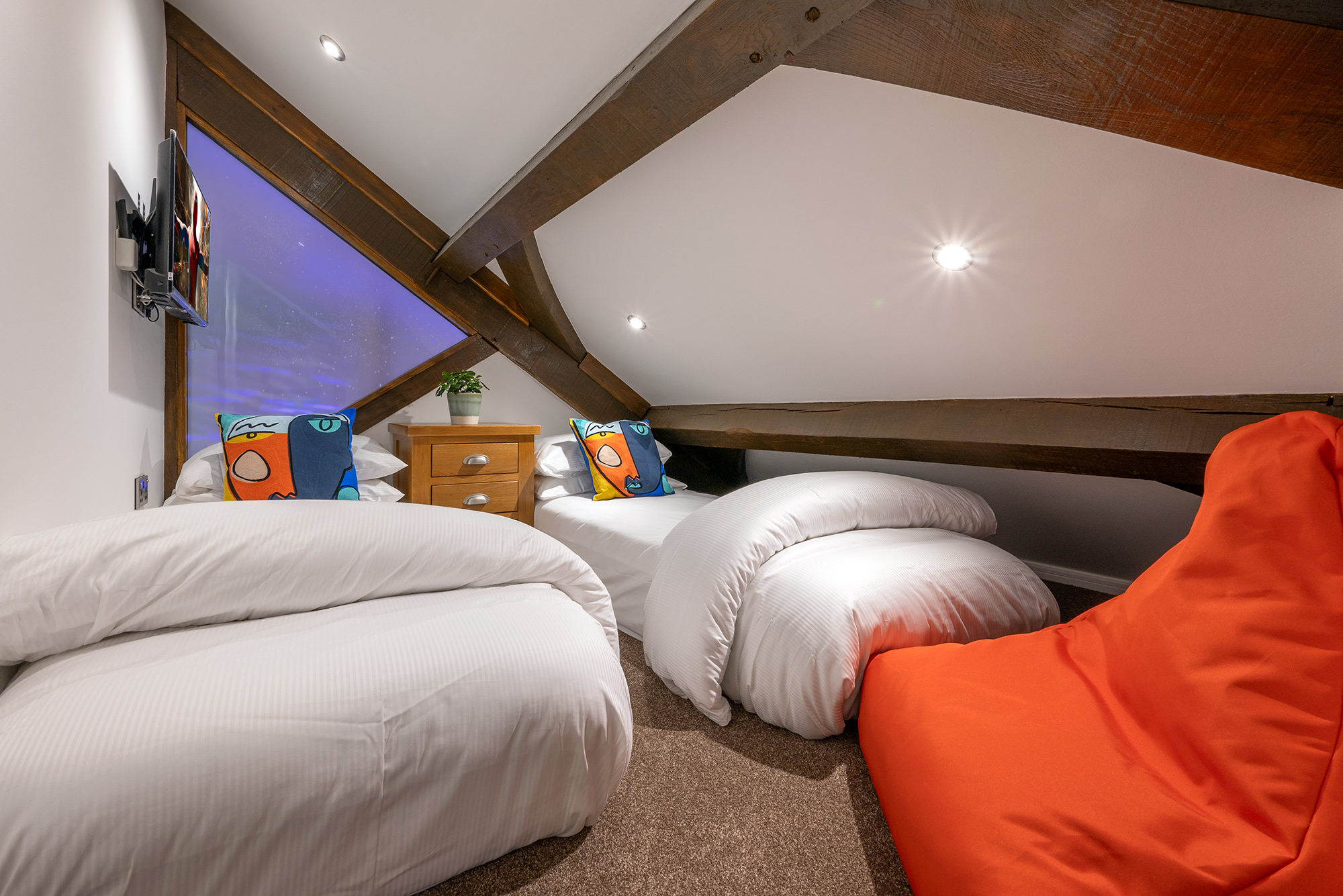 Jollyoaks - Bedroom 1: Zip and link beds (king size or twin) and two singles on the mezzanine -