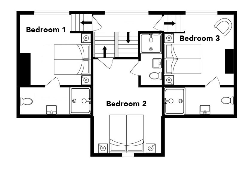This room is on the ground floor and has zip and link beds (king size or twin) and room for an optional pull-out guest bed, which is perfect for a child. It has use of the ground floor bathroom , shared with Bedroom 4.