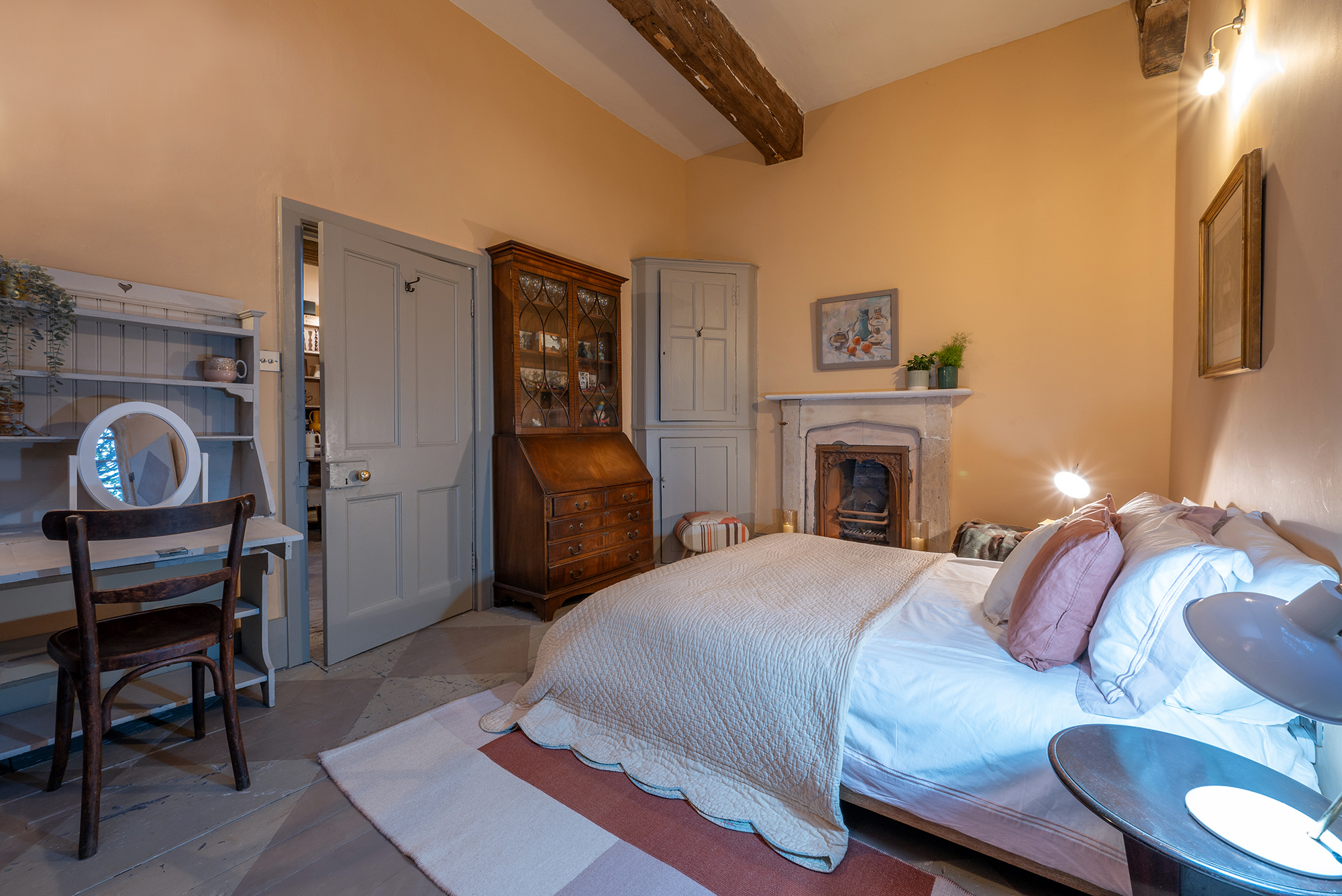 This is a first floor room with a large double bed. It uses the family shower room along the landing.