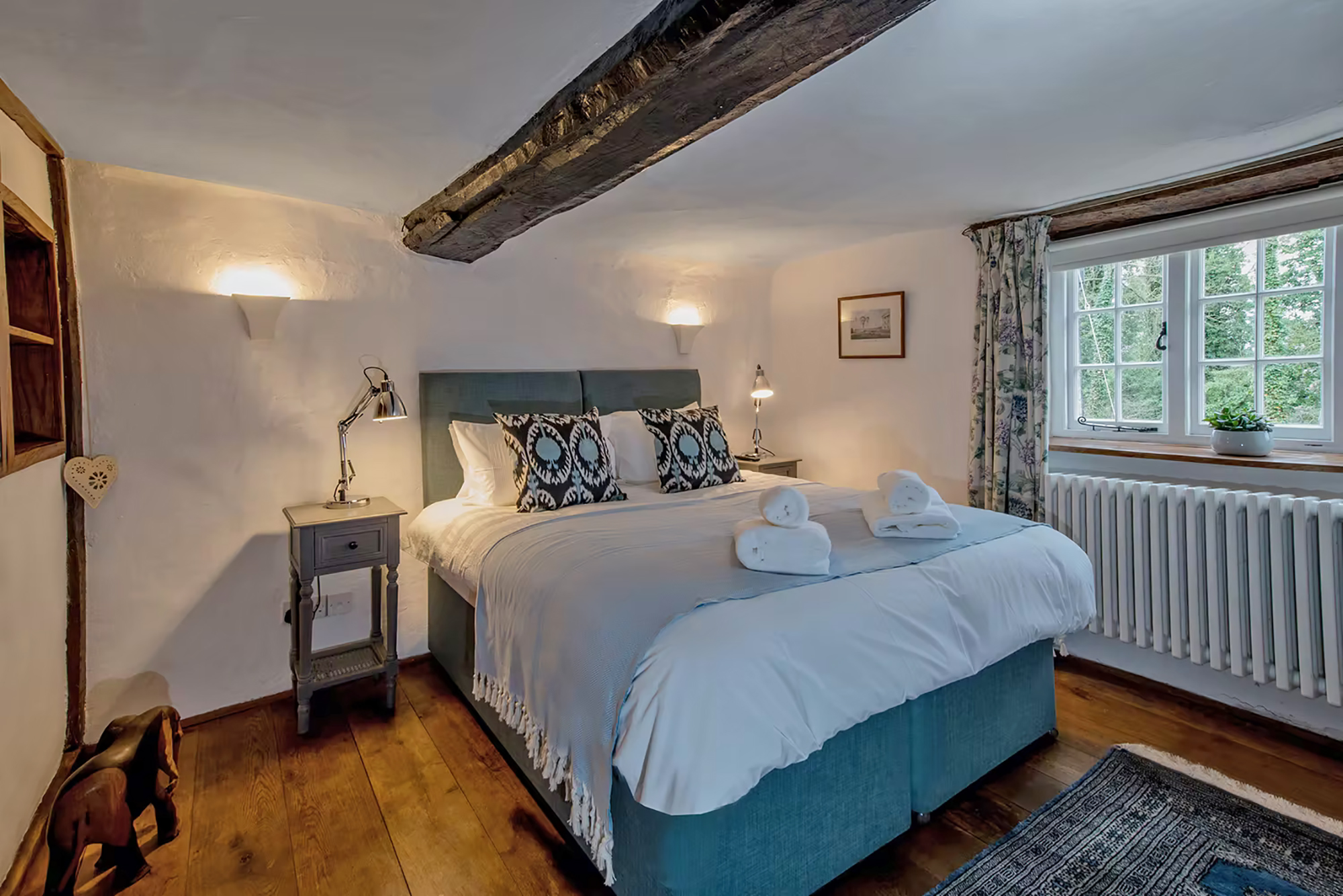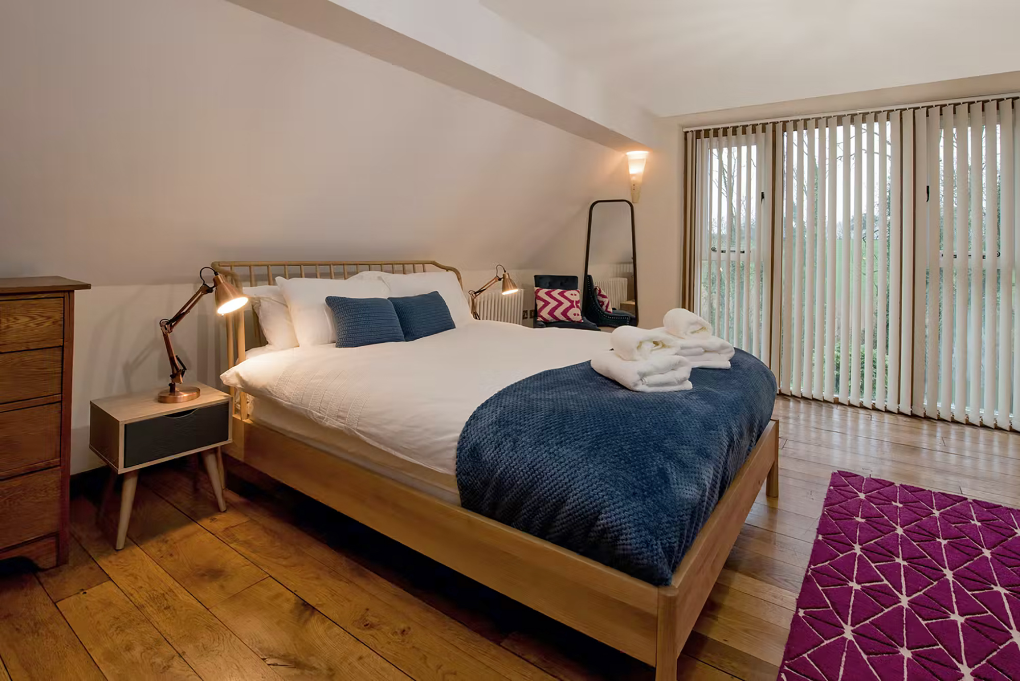 Pinklet - Bedroom 1 has full height windows giving views of the Wiltshire countryside -
