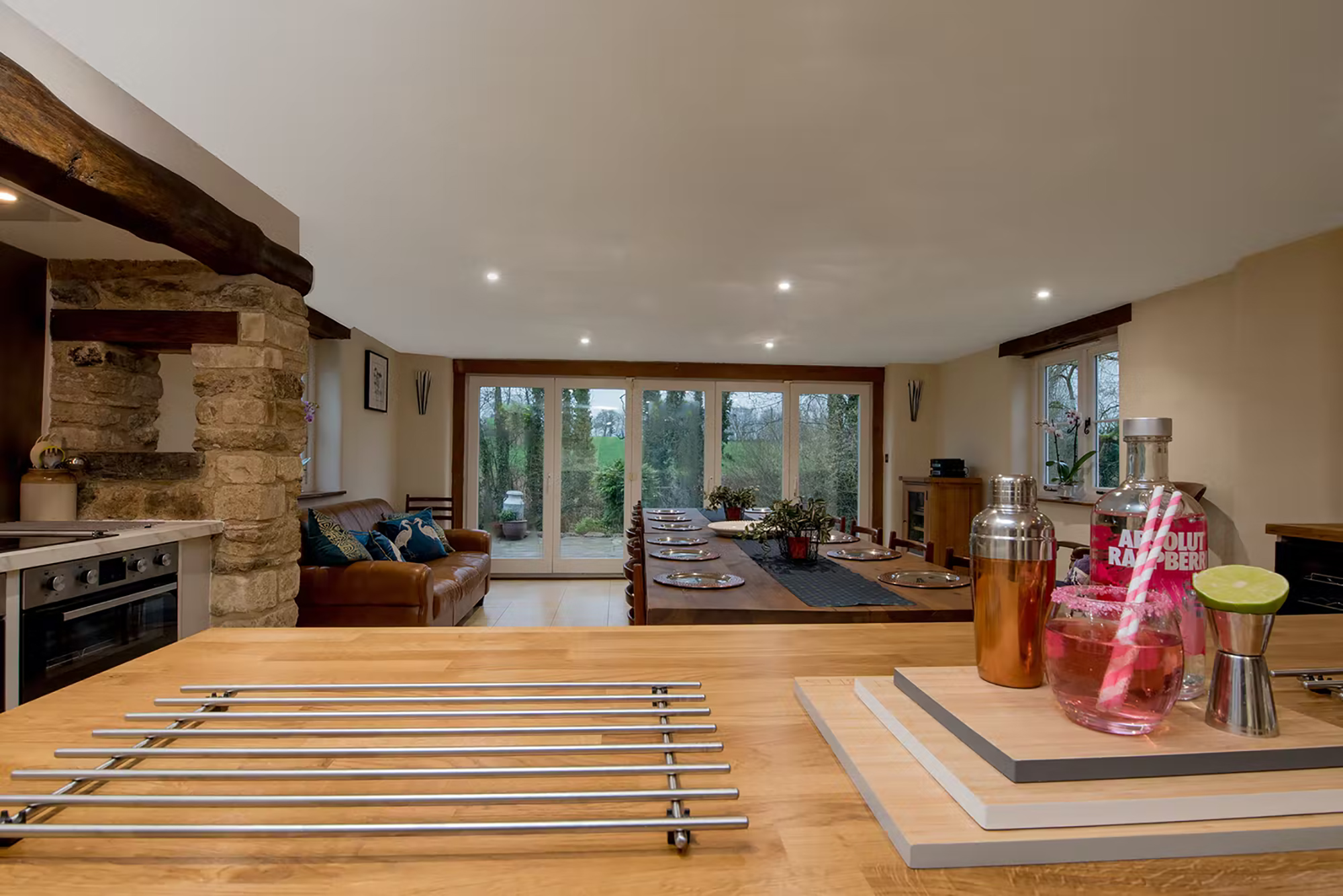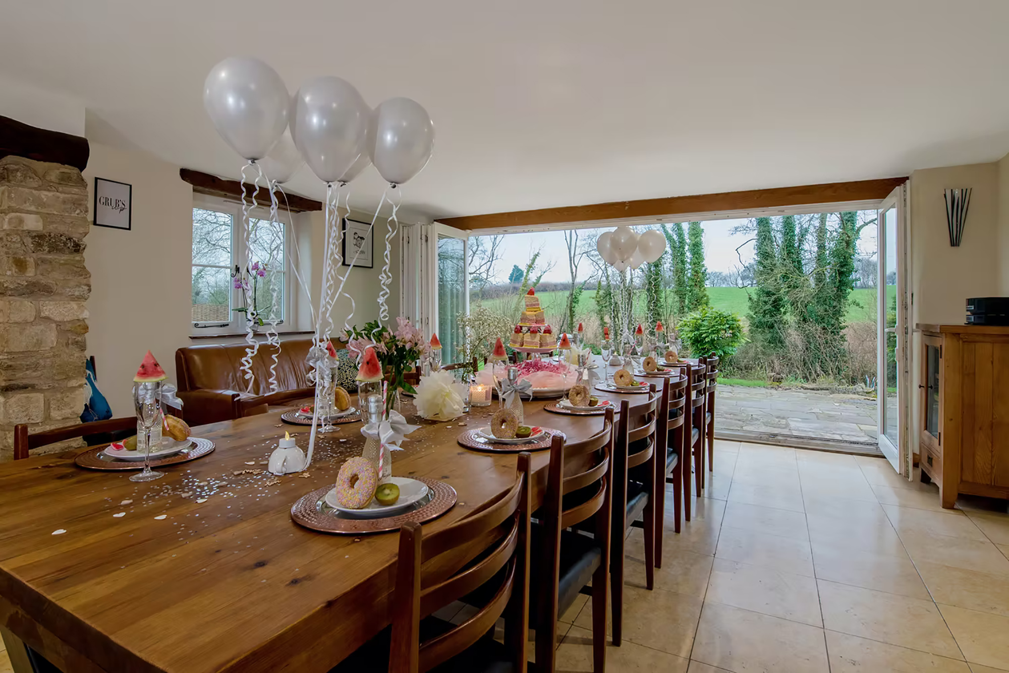 Pinklet - Bi-fold doors open from the dining area onto the south facing patio -