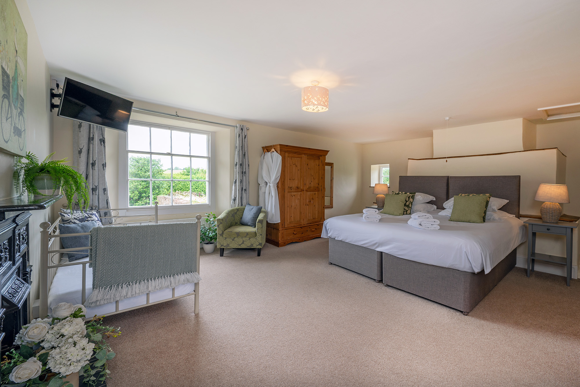 Pound Farm - Bedroom 8: A ground floor room that can have a super king or twin beds, and an optional extra single (additional charge) Bedroom 8