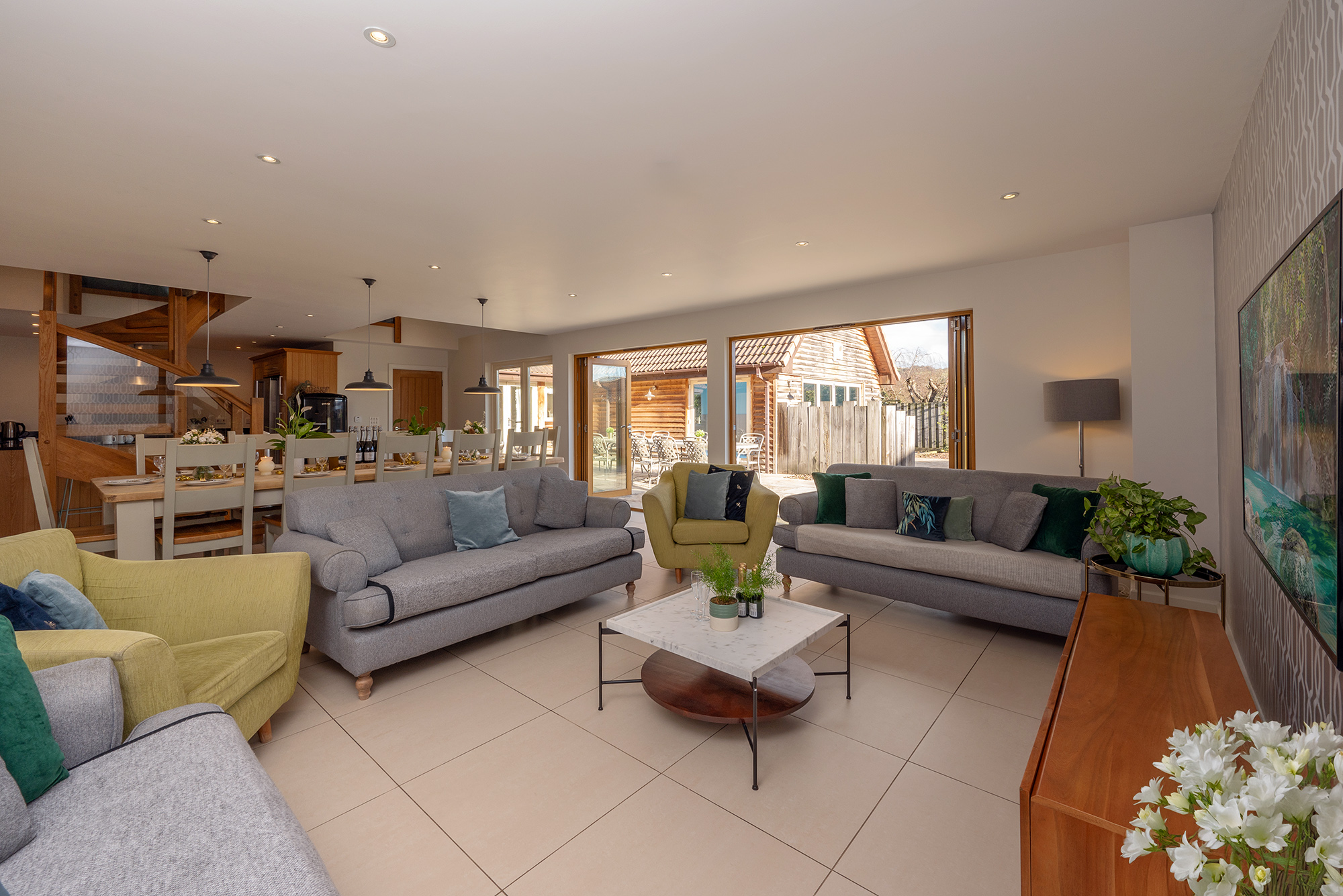 Ramscombe - Full height doors open onto the patio from the open plan living space -