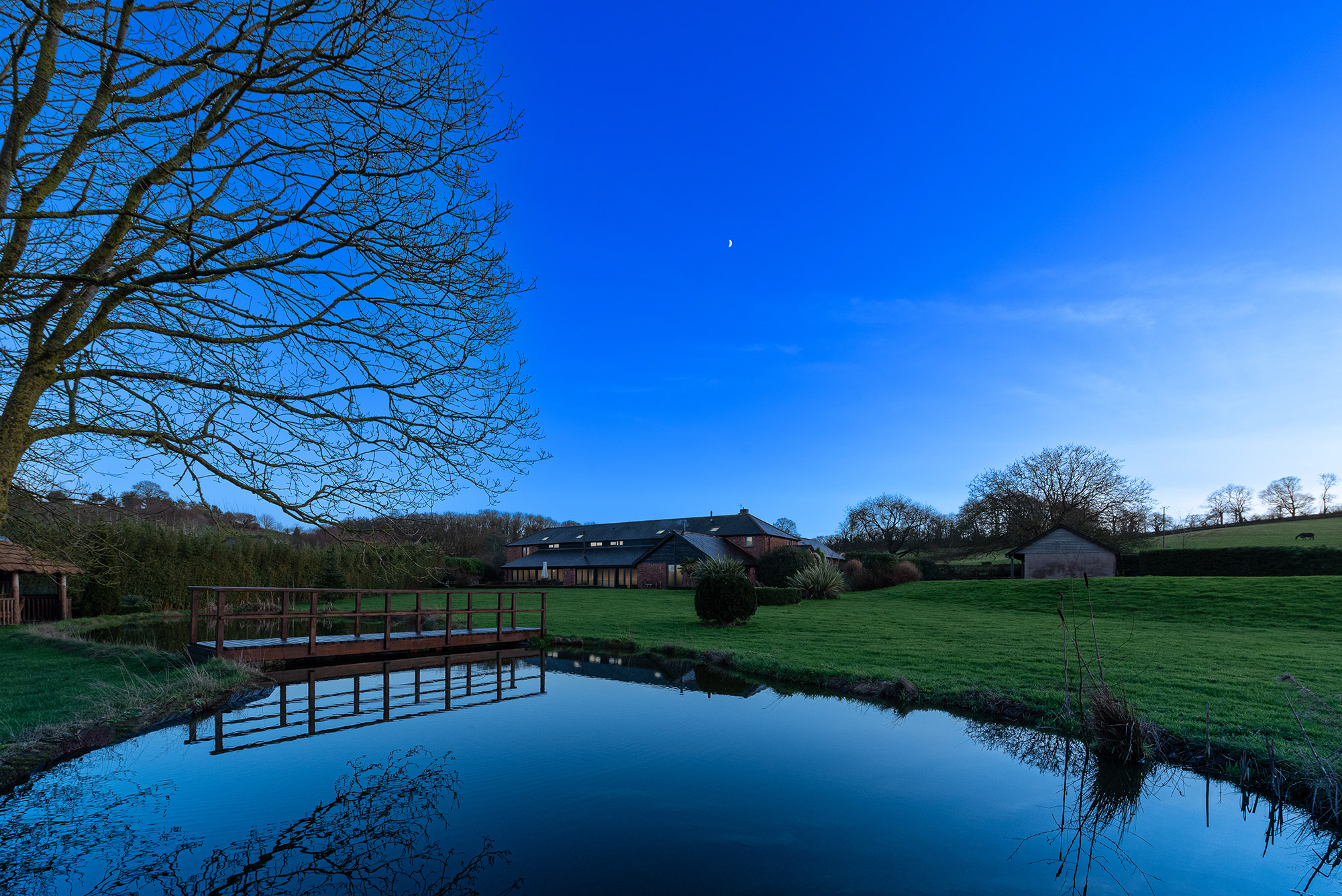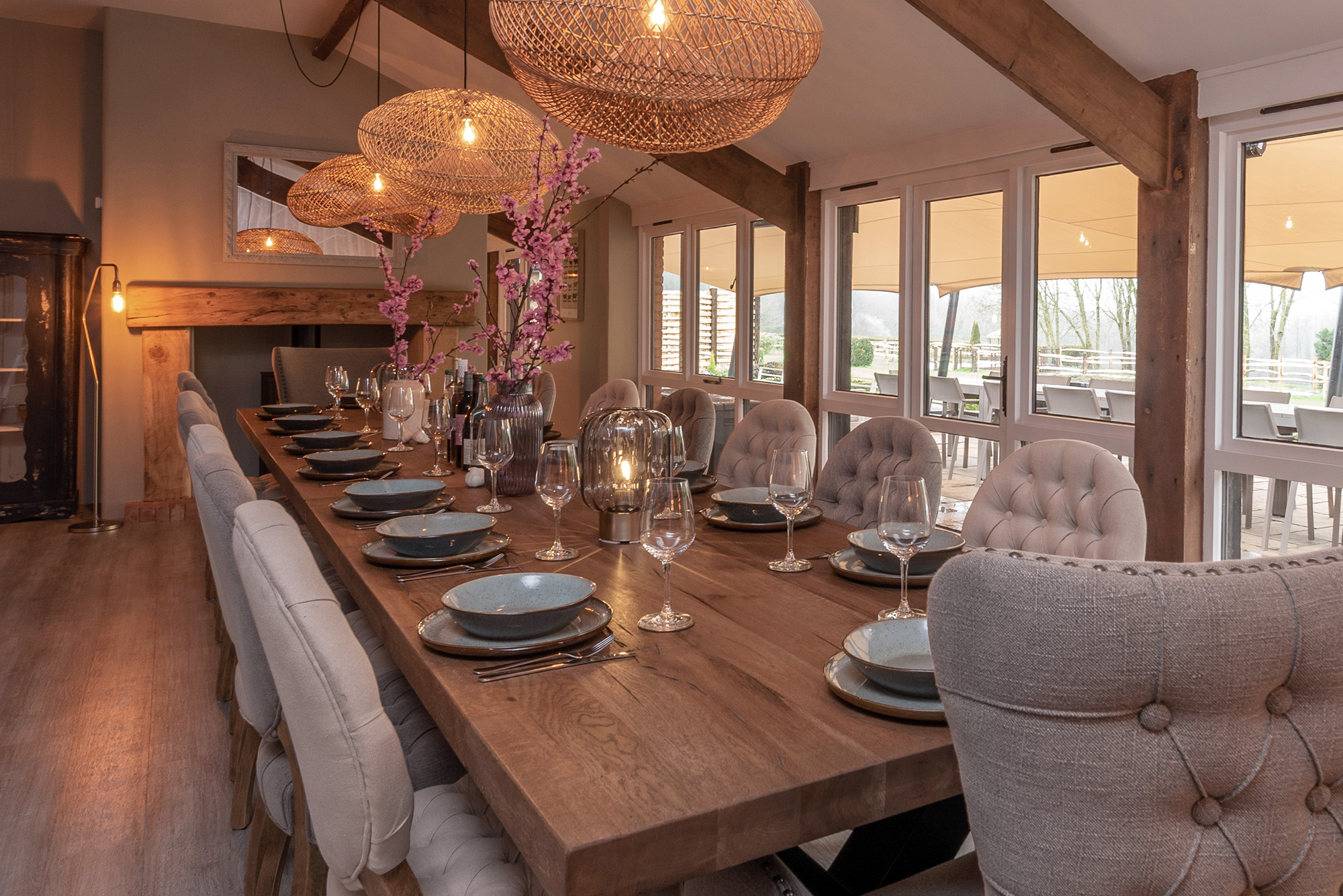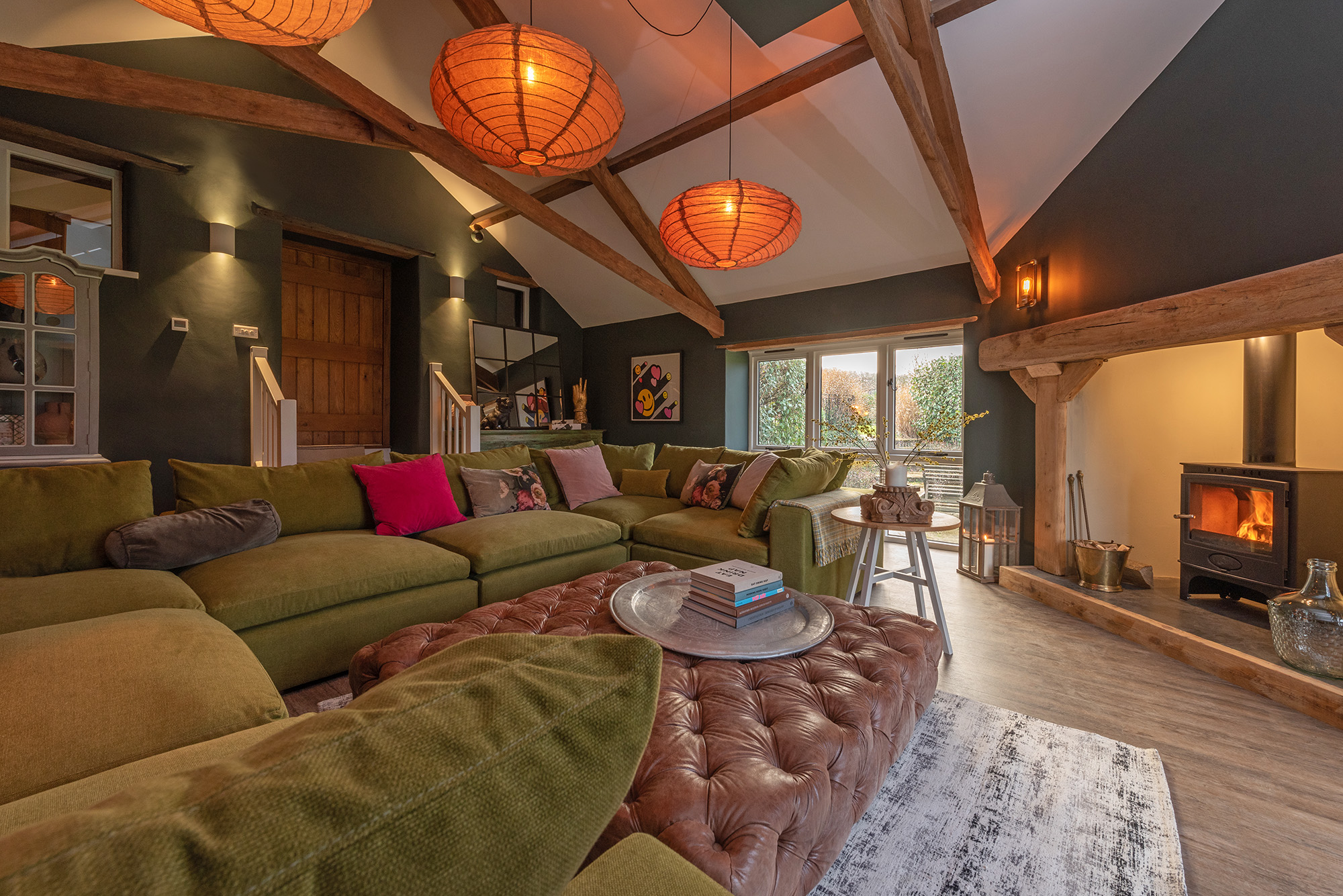 Ridgeview: Cosy lighting, the warm glow of the wood-burner -