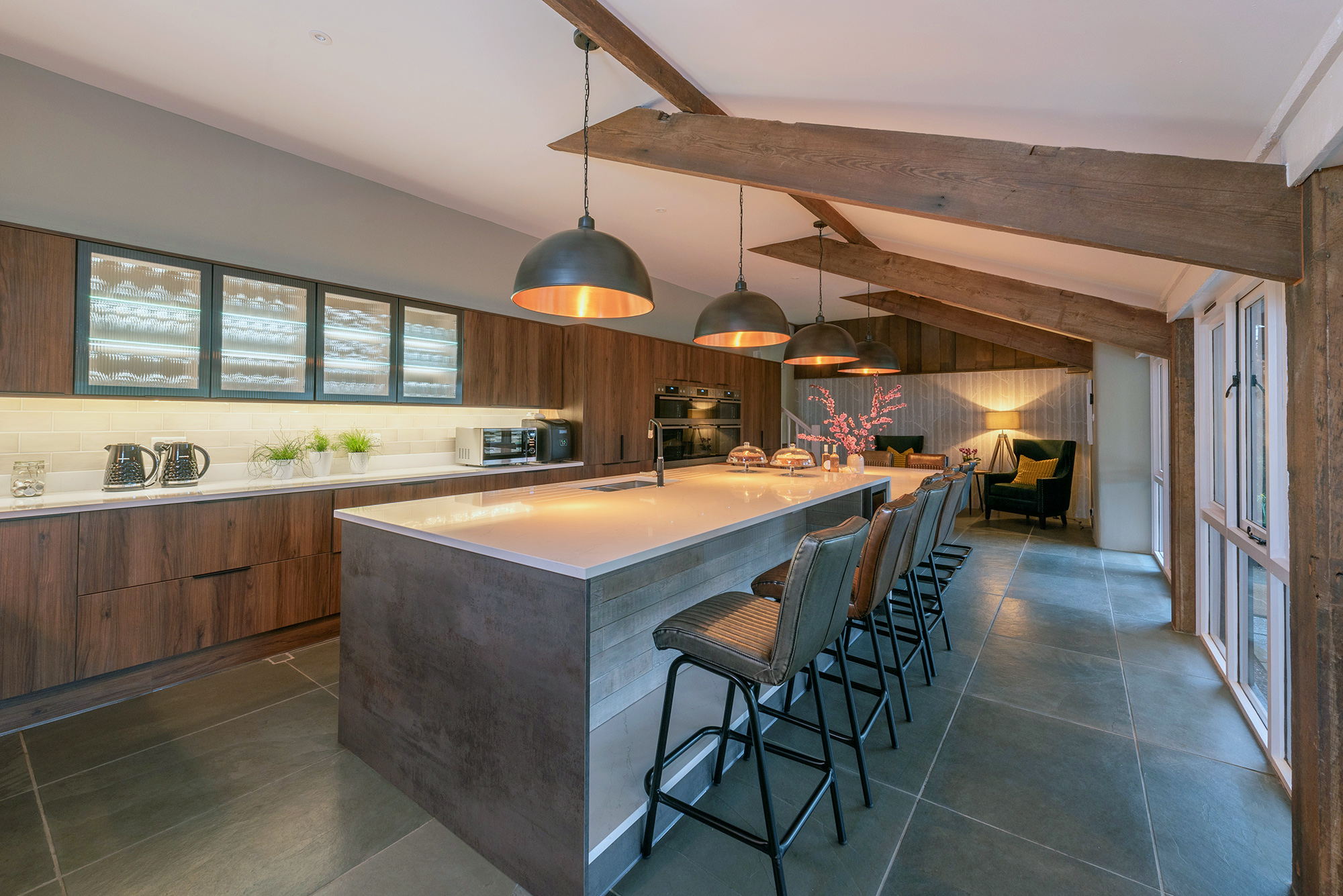 Ridgeview: A sleek and well equipped kitchen with room to gather together -