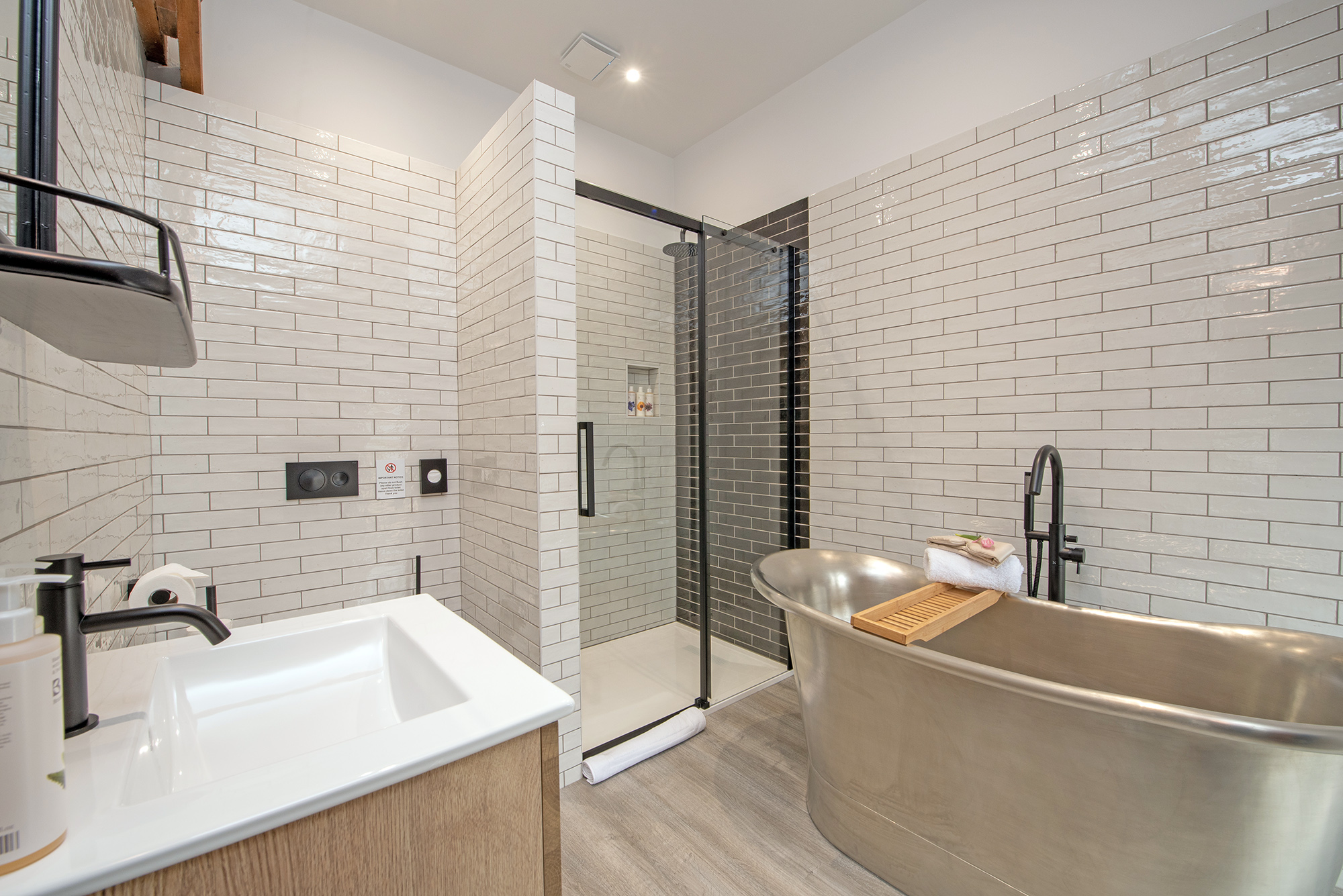 Ridgeview: The ensuite for Bedroom 3 has a free standing copper bath and a separate shower -