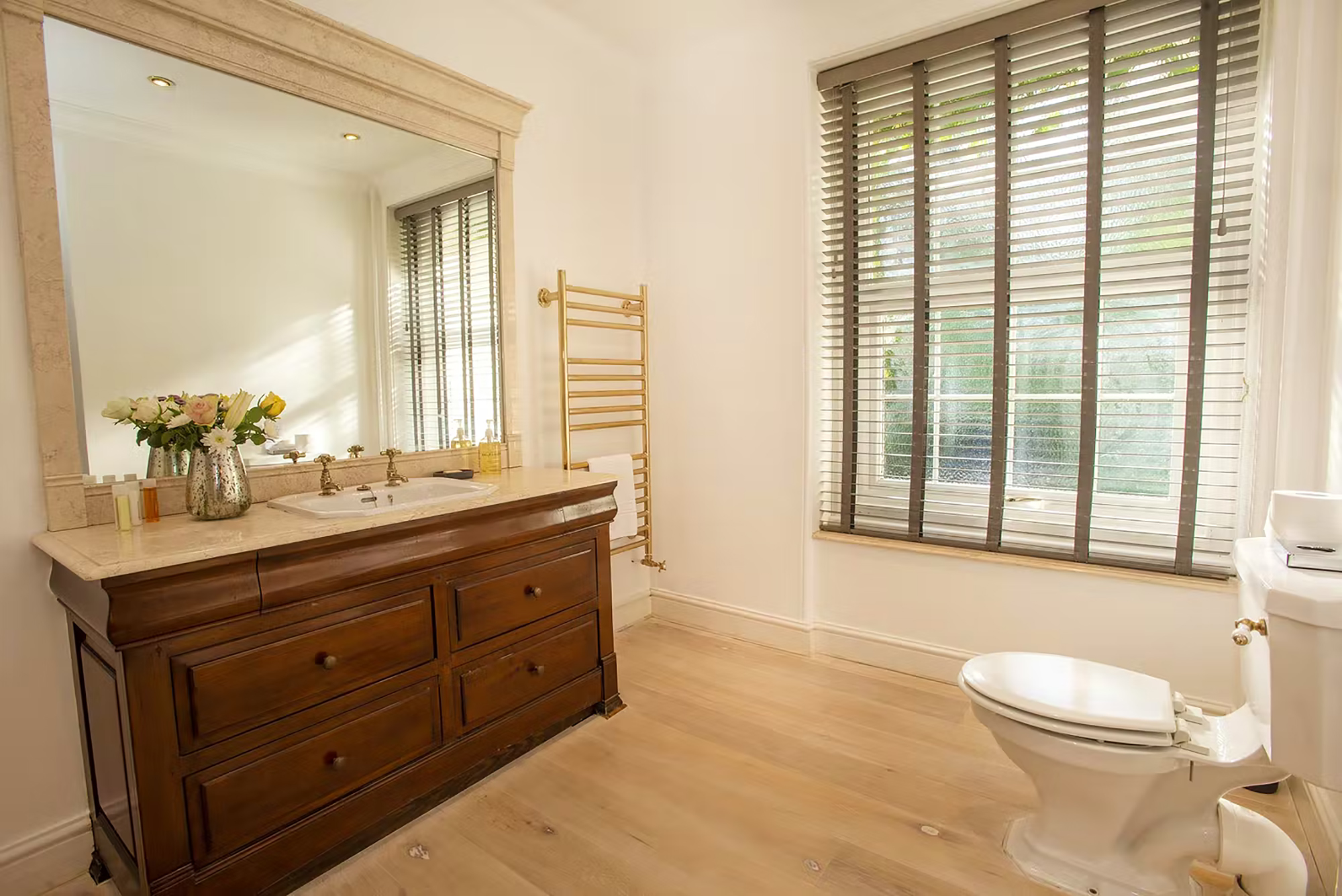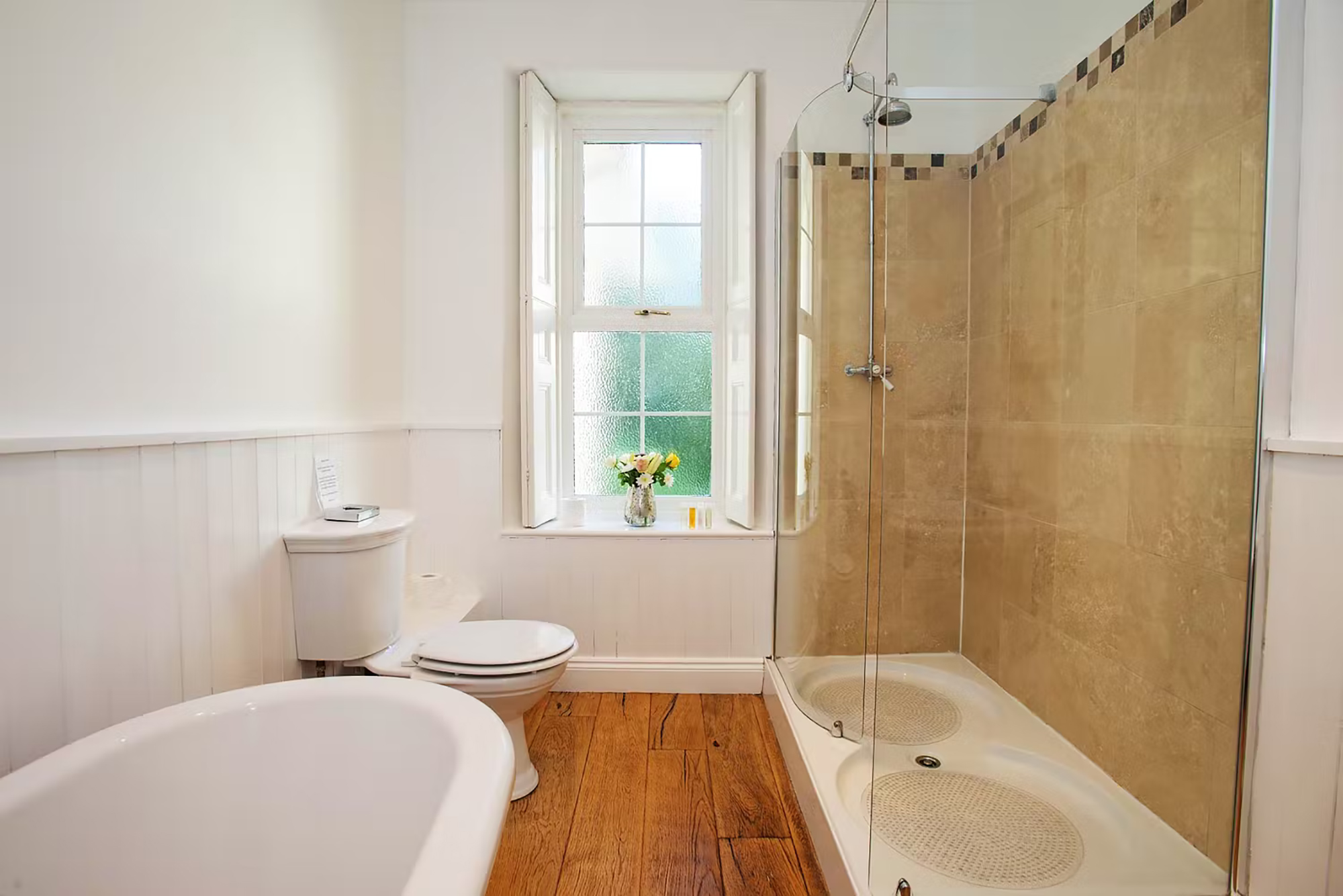 Sampford View - The main bathroom has a roll top bath and a big shower -