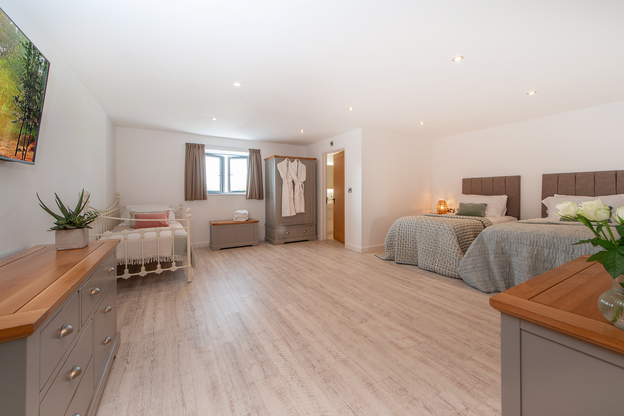 The Granary - Bedroom 8: Super king or twin room, 2 optional extra guest beds (extra charge), an in-room bath and an ensuite shower room Bedroom 8