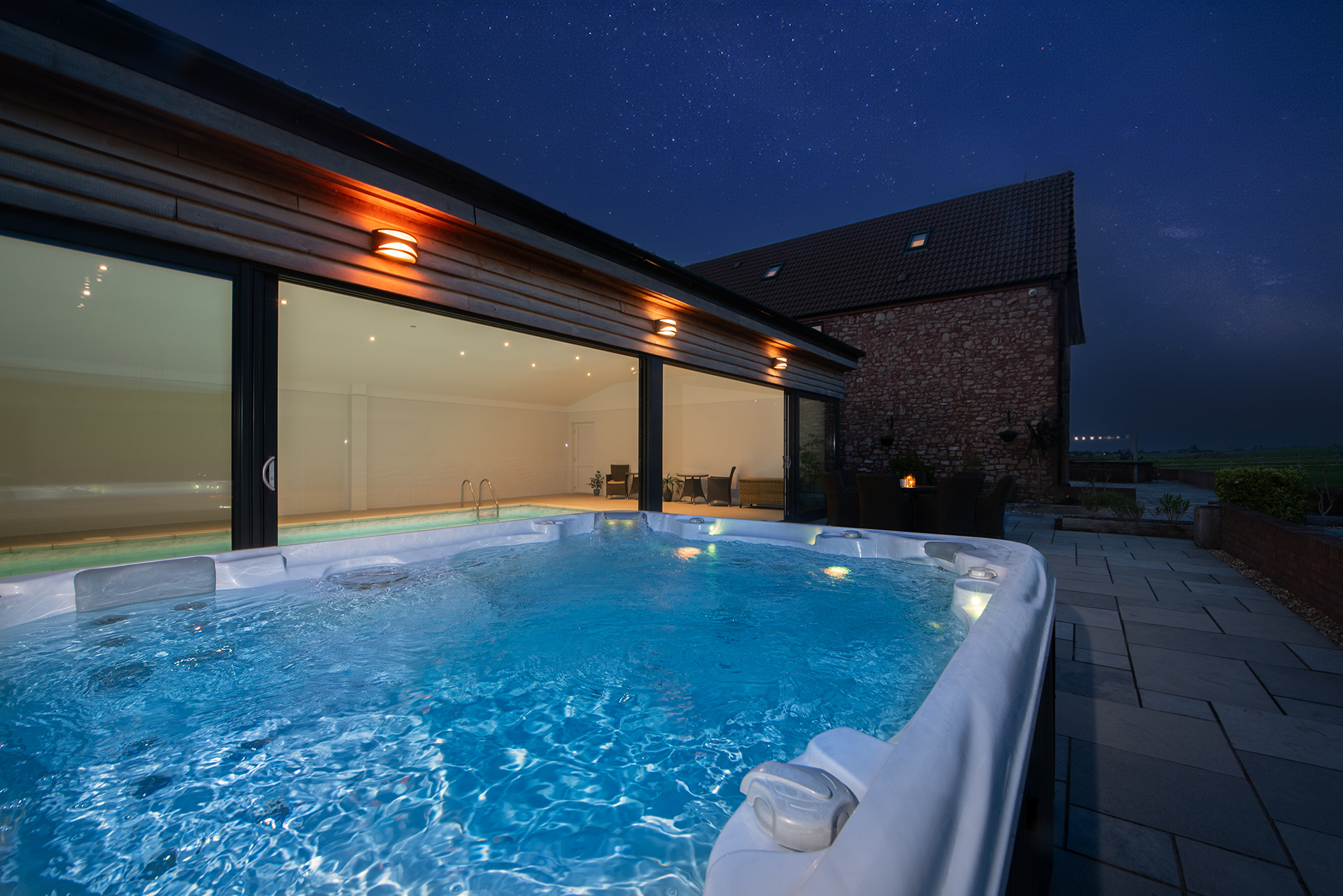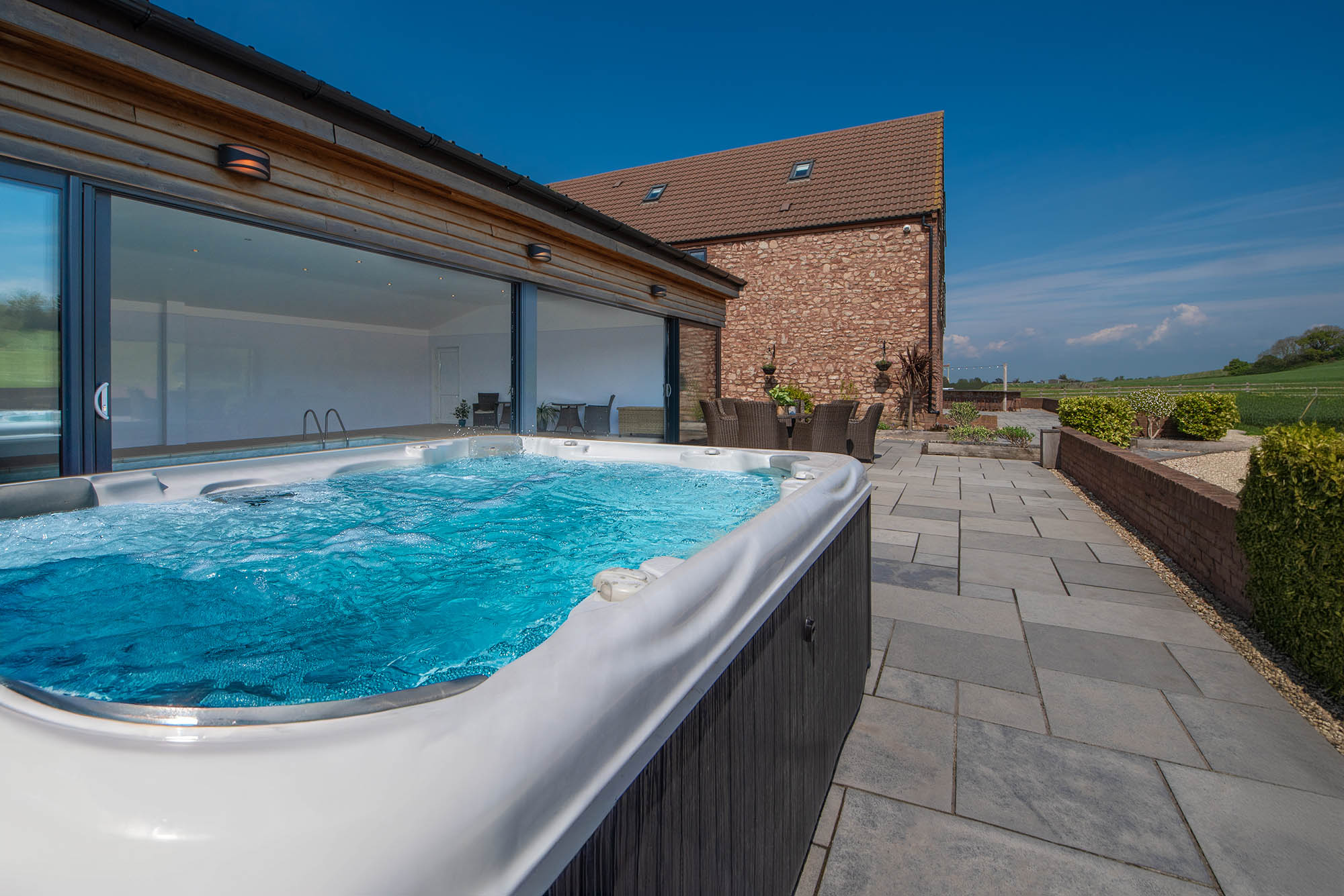The Granary - The hot tub is on the patio just outside the pool room -