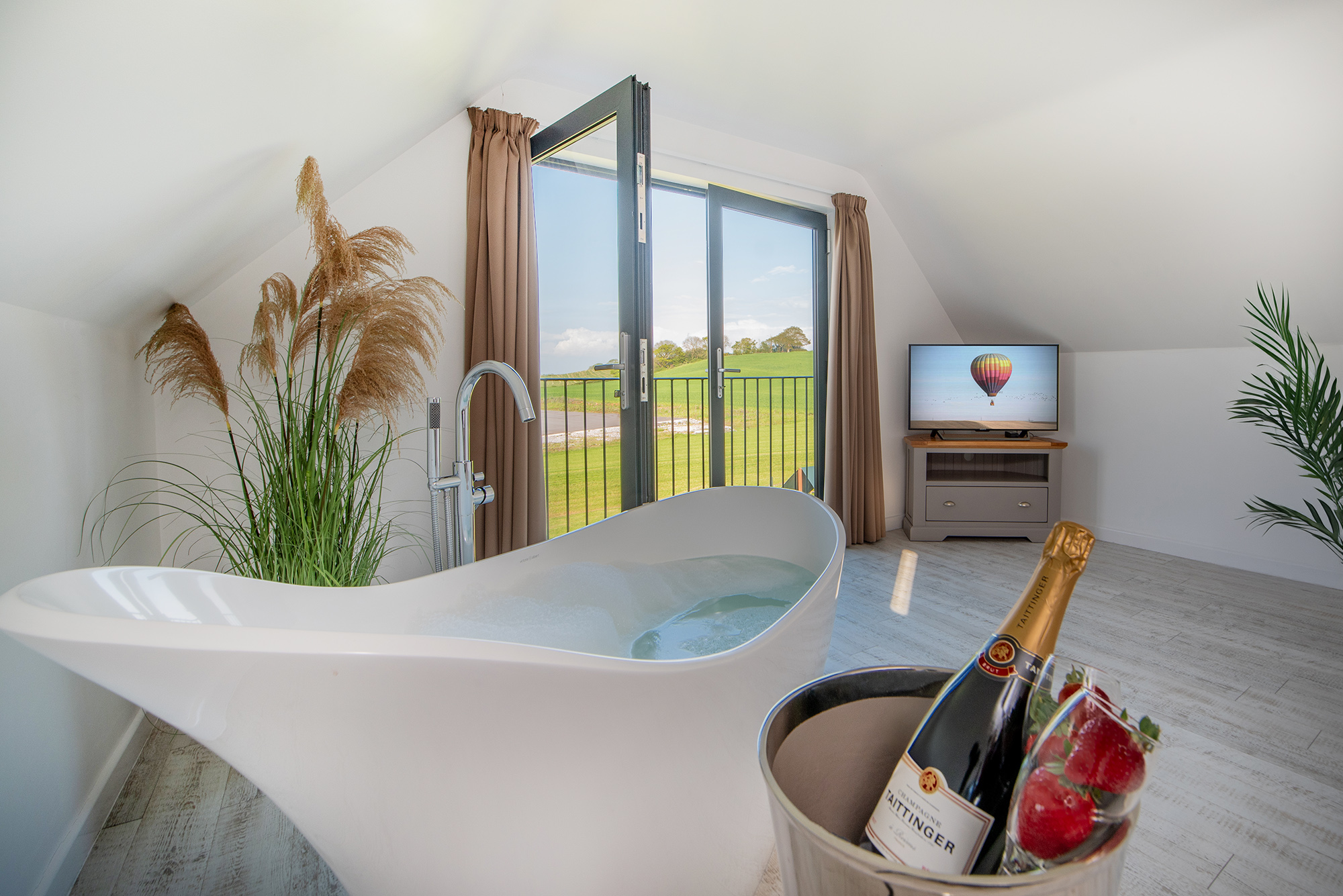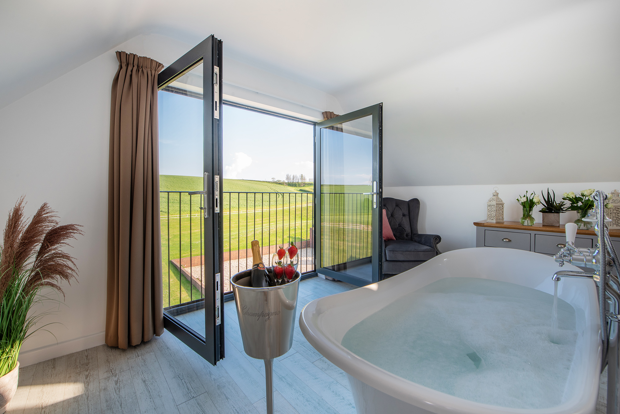 The Granary - Bedroom 8: A free standing bath, views of the Somerset countryside -