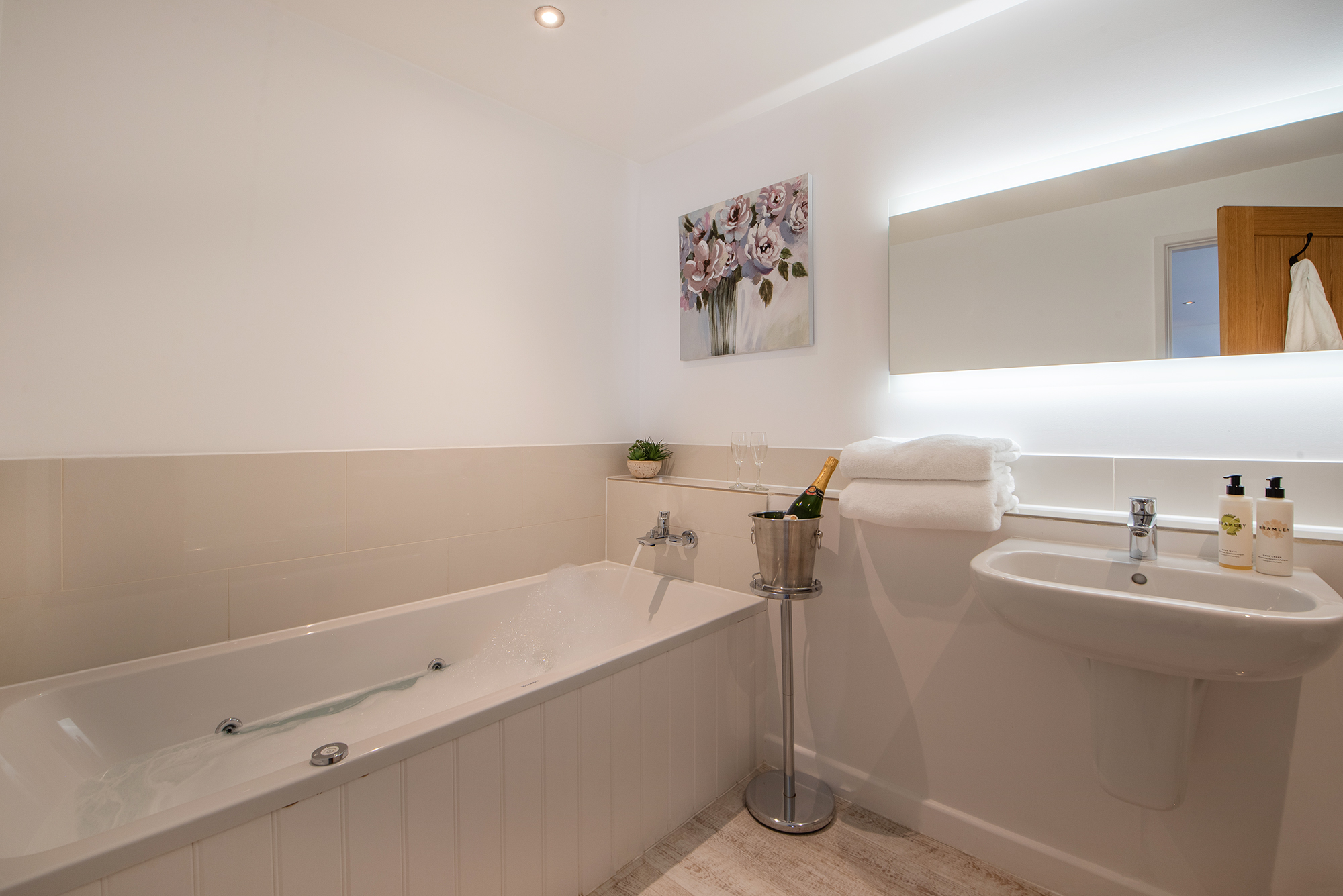 The Granary - Bedroom 8: Super king or twin room, 2 optional extra guest beds (extra charge), an in-room bath and an ensuite shower room -