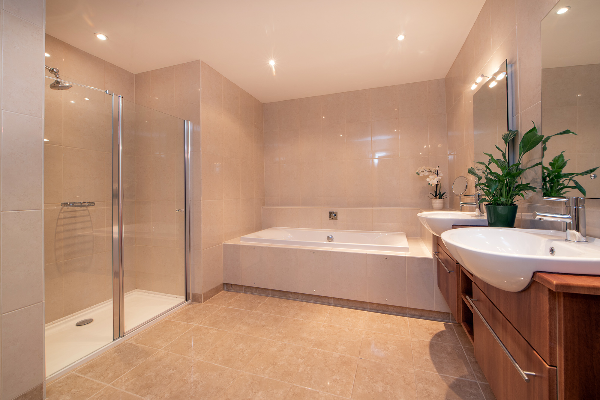 The Old Rectory - The Elrington Suite bathroom has a bath and separate shower -