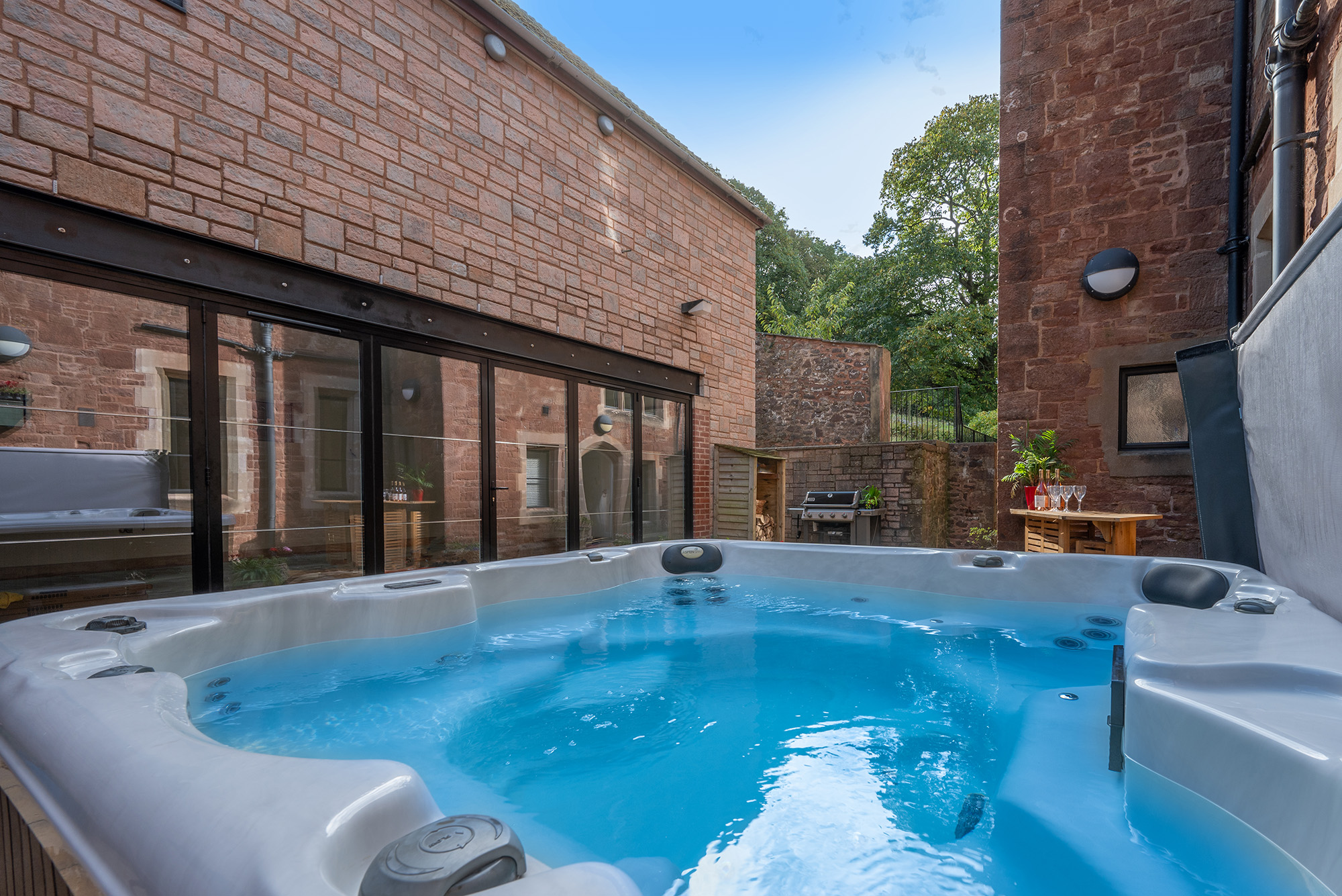 The Old Rectory - The hot tub is tucked away in the courtyard at the back of the house -