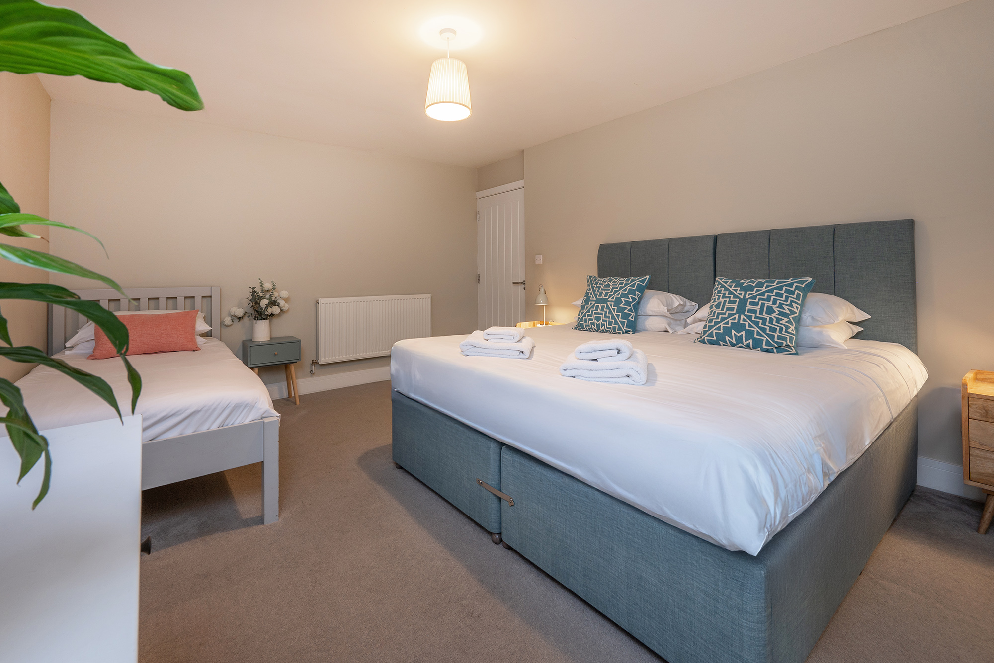 This is on the first floor and is another room that's ideal for families as it has zip and link beds (super king or twin) plus a single, and an ensuite shower room.