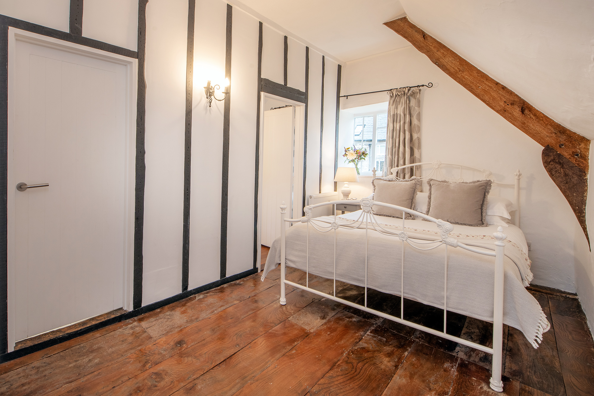 Whispering Thatch - Bedroom 6 is on the ground floor in the integral annexe and has French doors to the garden Bedroom 6