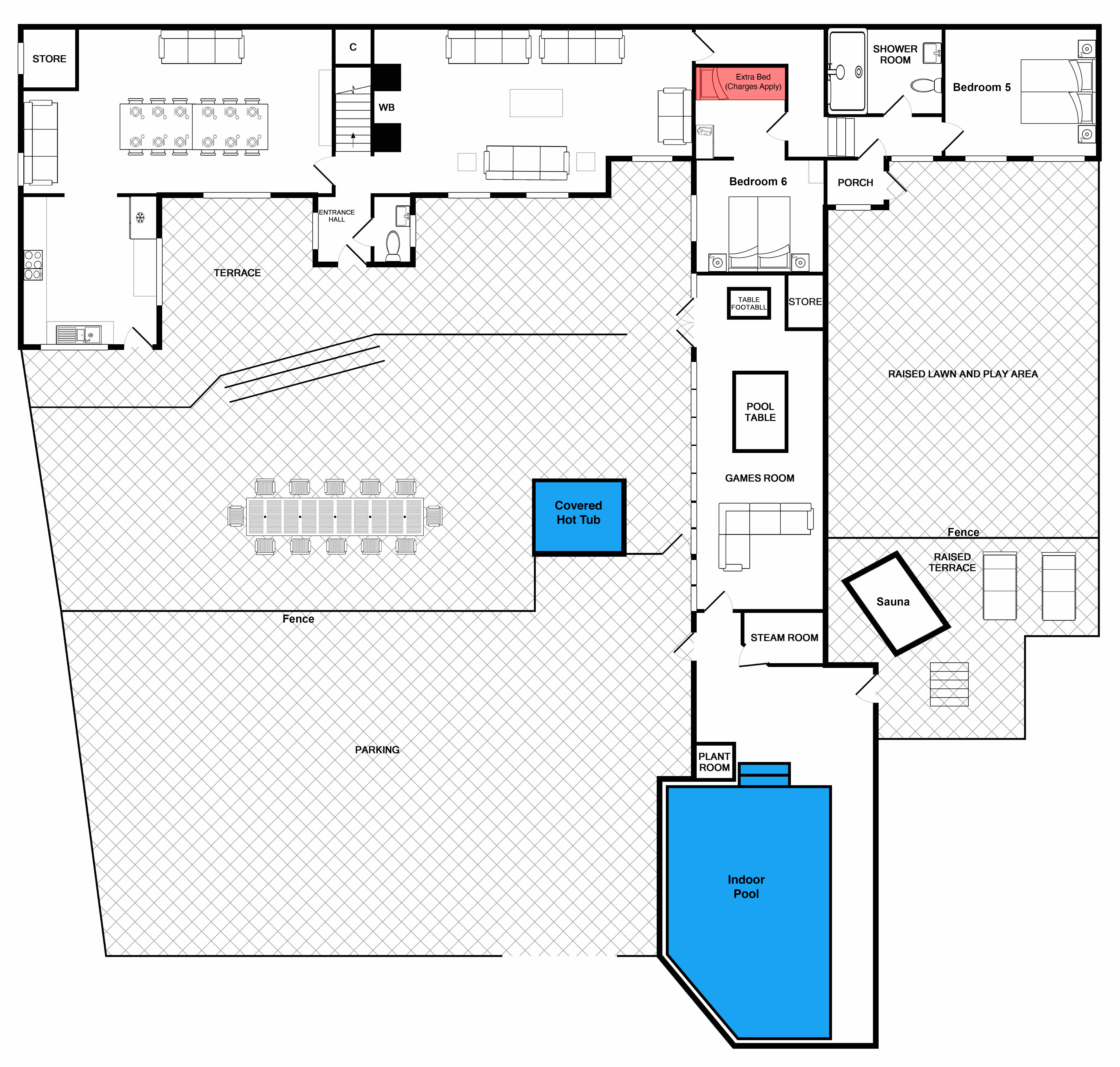 This is a ground floor room that can have a super king or twin beds. It shares a shower room with Bedroom 5.